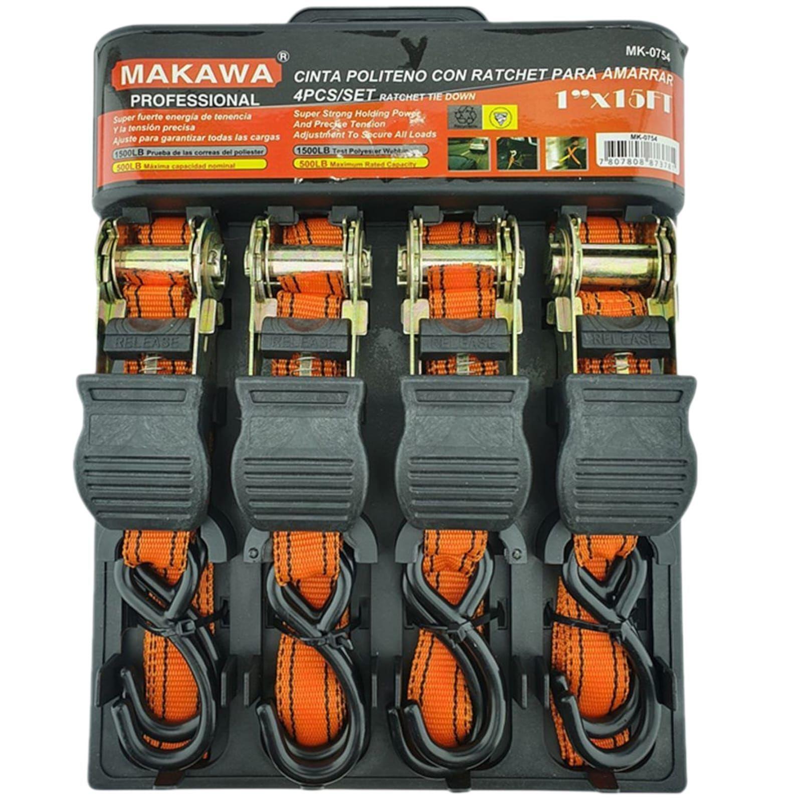 Juego 4 Eslingas Cinta De Amarre Con Ratchet 1pulgx 15ft