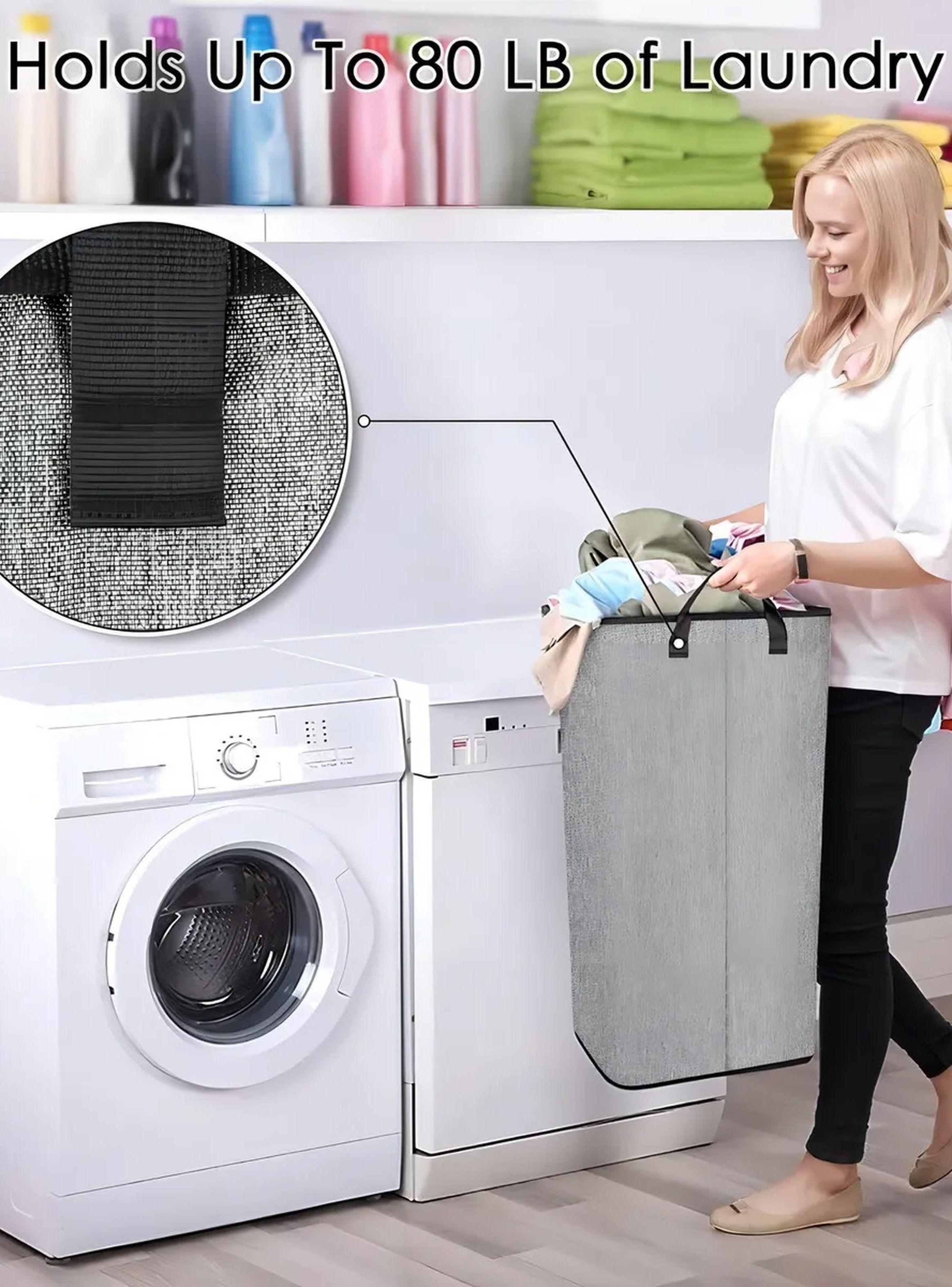 Canasta de Ropa 80LB Tela Gris Asas Resistentes Plegable