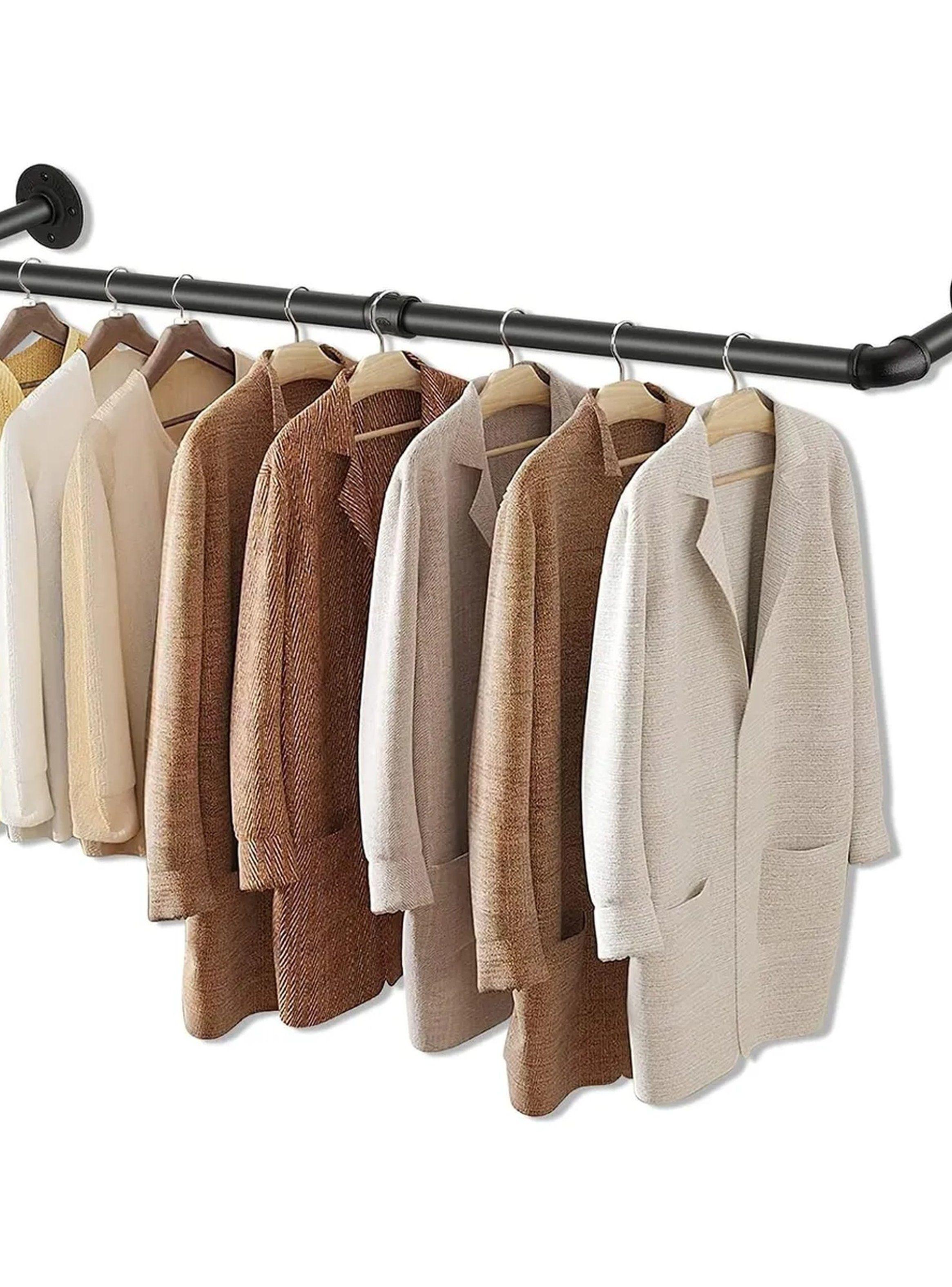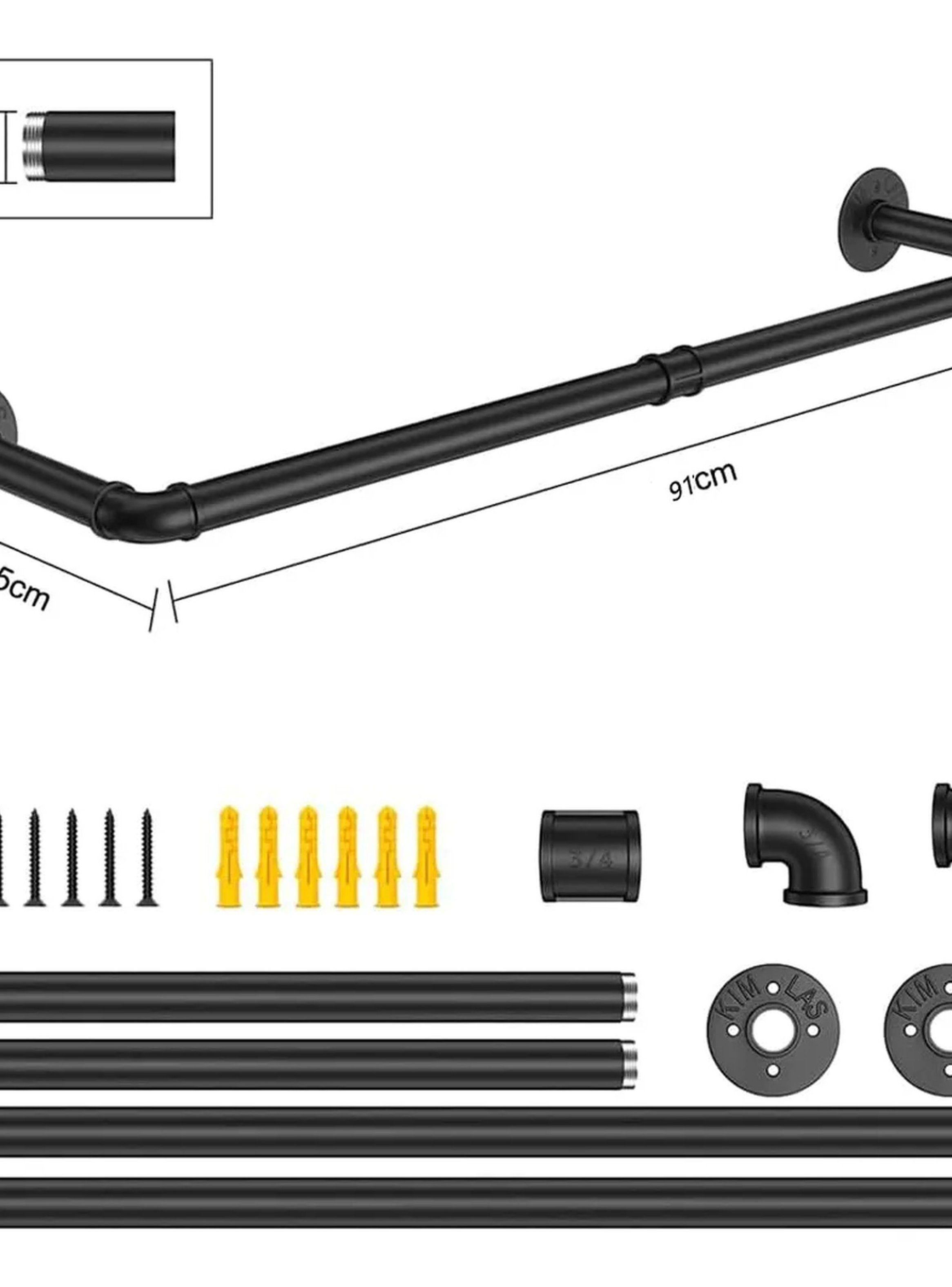 Barra de Ropa Montaje en Pared Metal 91cm Negra Resistente Carga 60kg