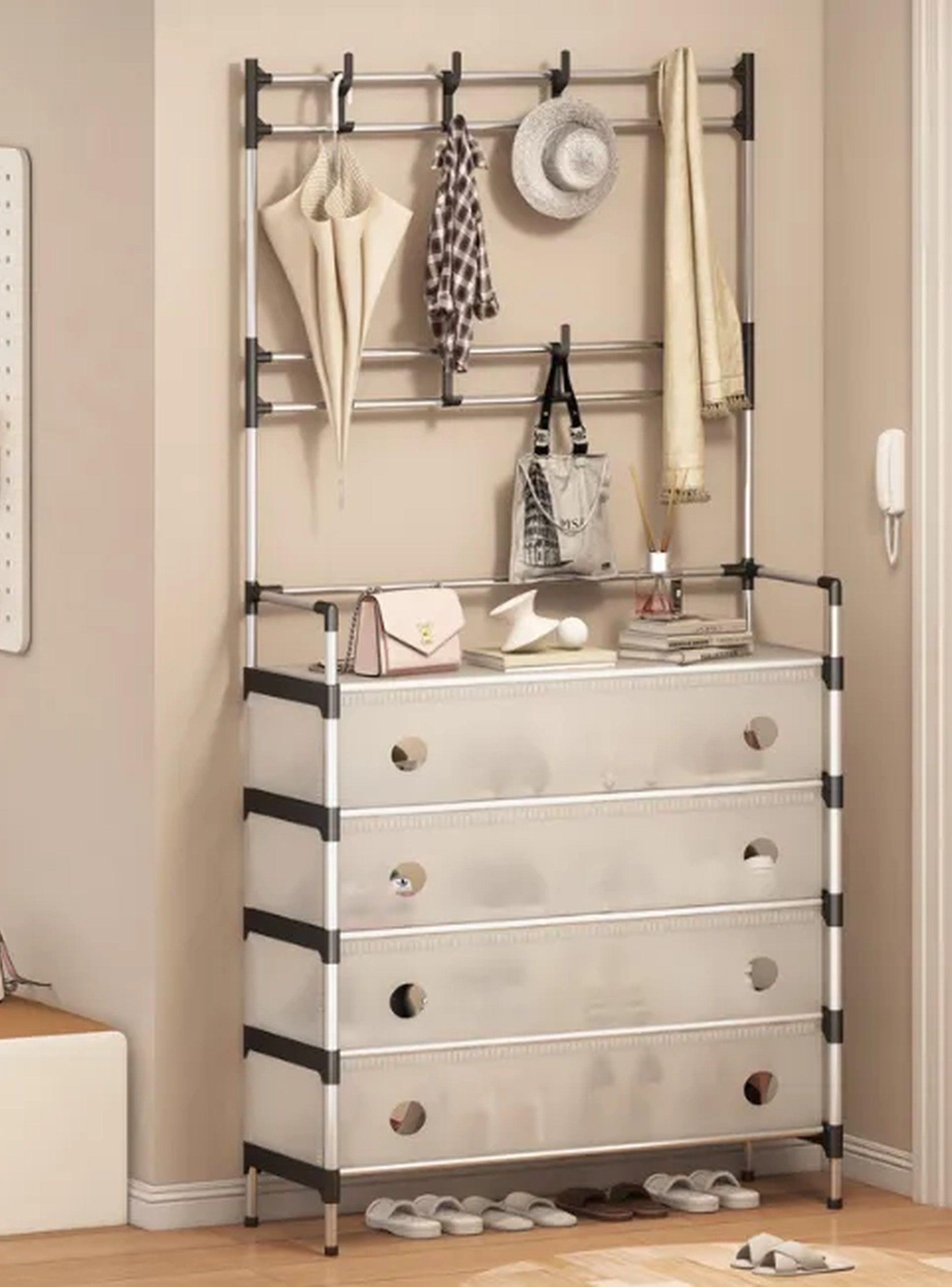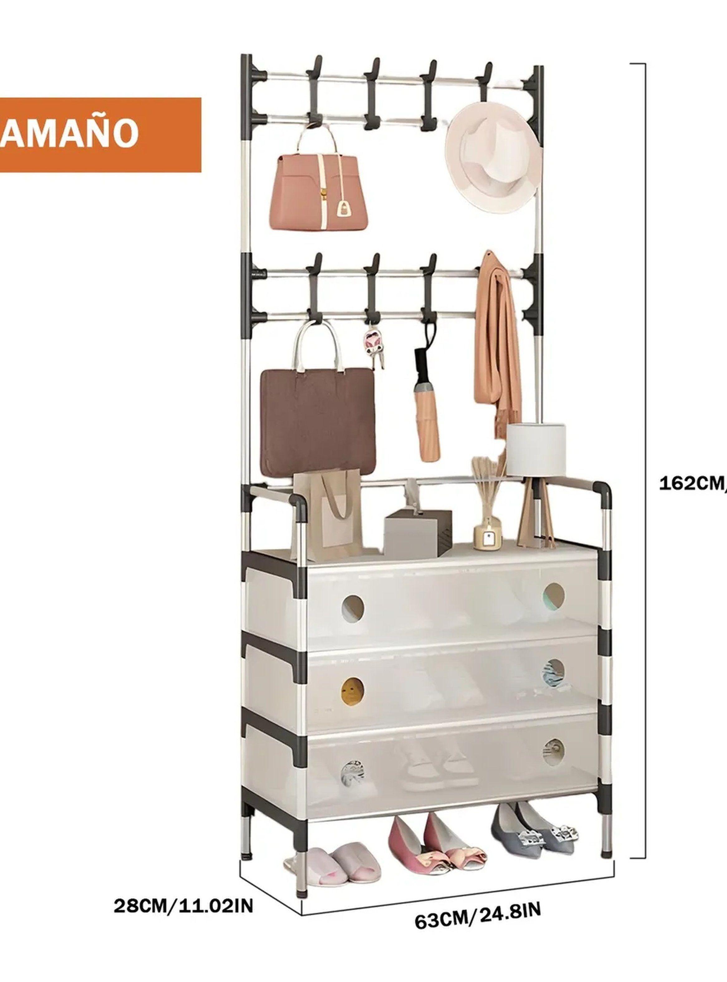 Organizador De Ropa Multifuncional Con Perchero 3 Cajones Tela Beige