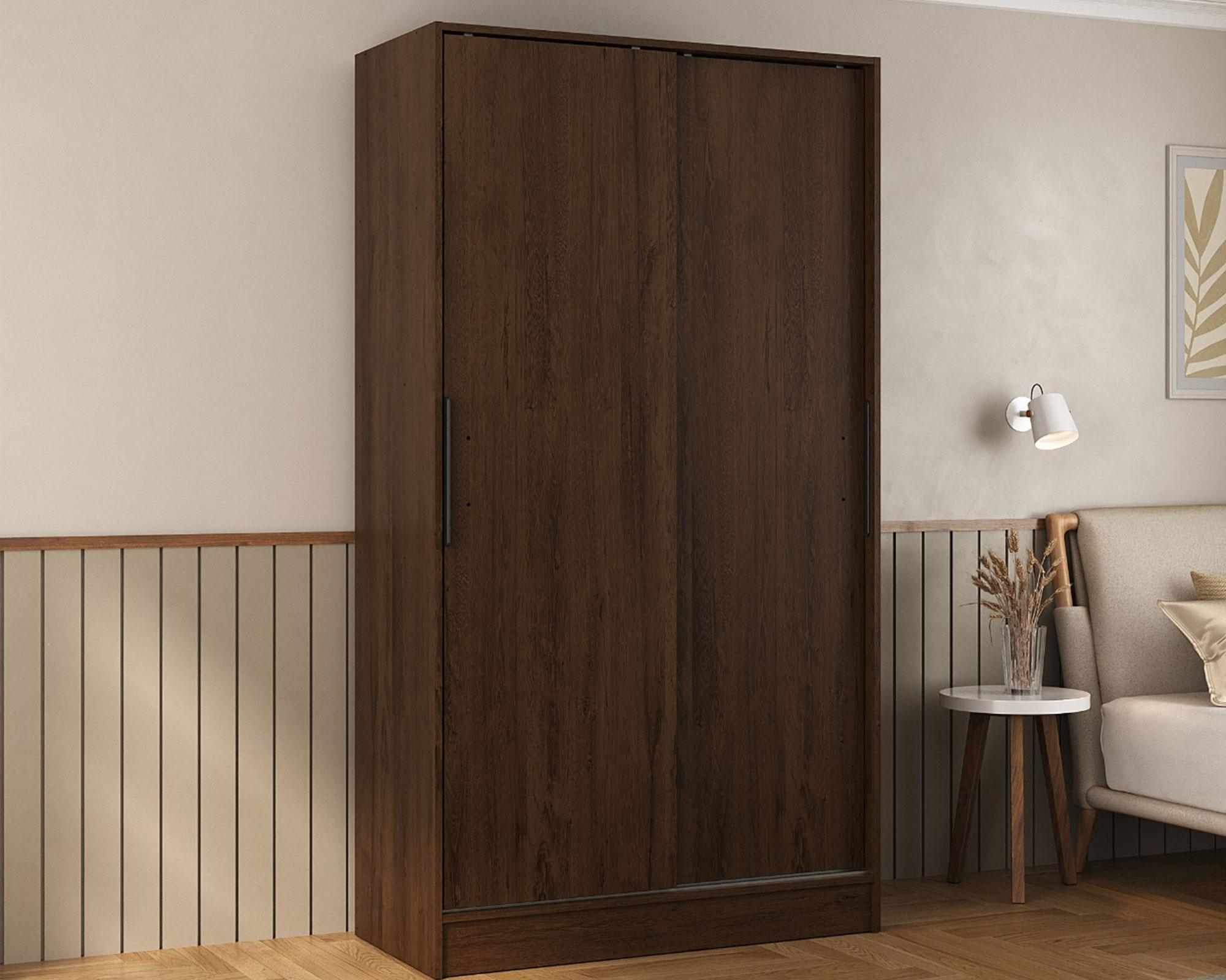 El clóset de 2 puertas es perfecto para compartir o para quienes requieren un espacio más amplio. Su distribución suele incluir varias secciones, con cajones inferiores y zonas superiores para colgar prendas largas. Así que es una opción común en dormitorios principales y ofrece una organización equilibrada entre funcionalidad y estética.