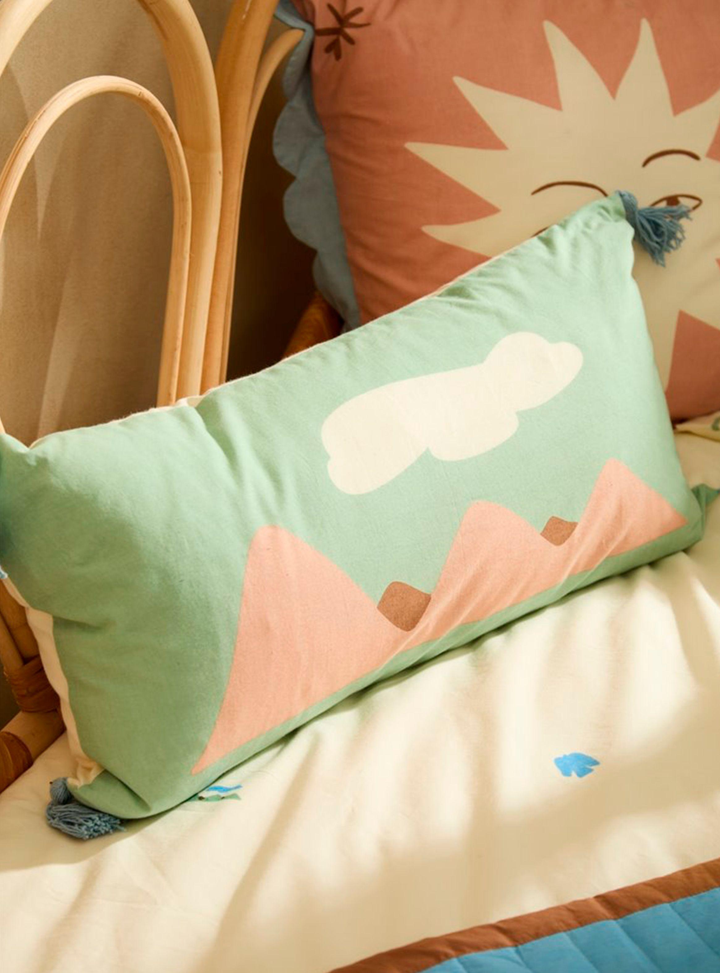 Estos son los más comunes y versátiles. Su principal función es aportar estilo y cohesión visual a espacios como la sala de estar o el dormitorio. Suelen colocarse sobre sofás, camas o sillones y se elaboran en múltiples texturas, colores y formas, lo que permite jugar con combinaciones y temáticas.