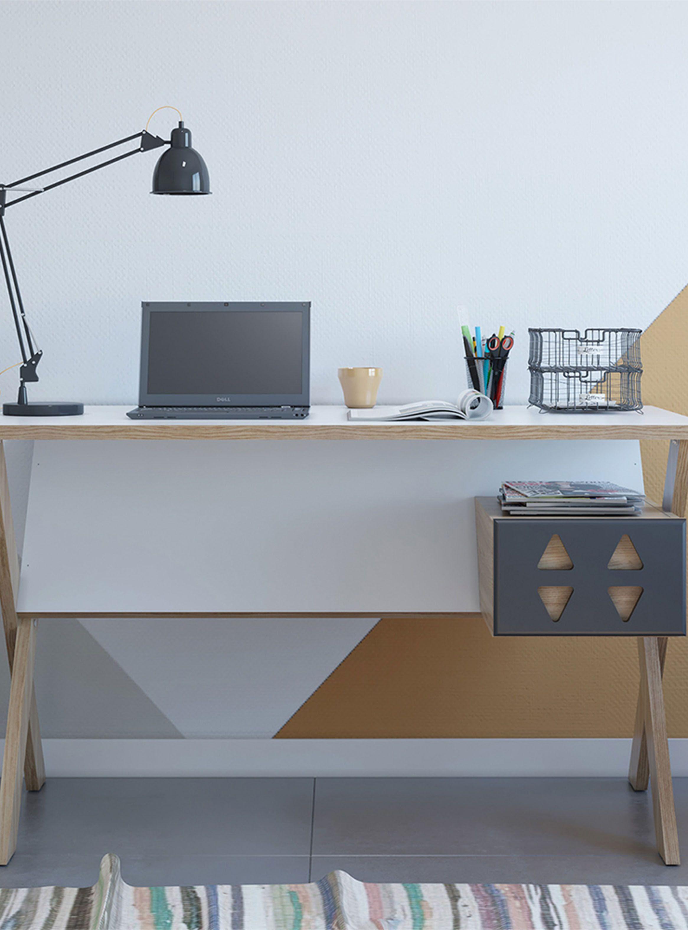 Contrate servicio de armado sino se maneja en el tEl armado es para un experto, por suerte lo soy, pero me imagino alguien que no tiene ni un destornillador en su casa, si lo compra contrate el armado, sino terminará de mal humor, una vez armado las patas en x son de agromerado x lo que tiene poca estabilidad, el cajonvolnatw es más bien decorativo a por su forma uno se sienta silla y las piernas y rodillas tocan de inmediato así que sentado se ocupa un tercio del espacio escritorio, hay que cortar la pieza para poder entrar más las piernas, positivo el tablon o superficie a pesar de ser aglomerado es firme por su espesor