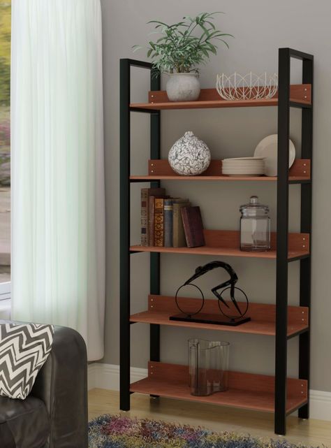 Estante con estilo rústico de 5 niveles para el living de tu casa, oficina, dormitorio o sala de estar. Utilízalo para colocar objetos decorativos, libros o los juguetes de tus niños.