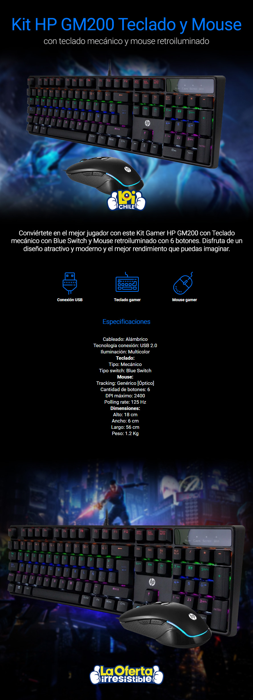 Kit Gamer HP GM200 Teclado y Mouse