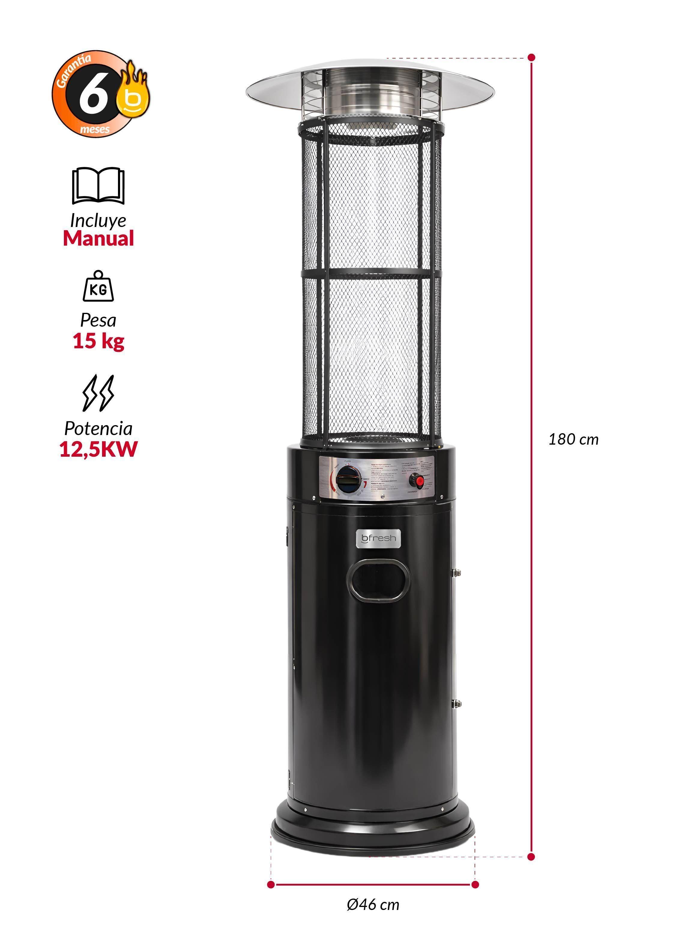La estufa a gas de exterior es una de las alternativas más comunes para terrazas amplias. Utiliza cilindros de gas como fuente de energía y suele tener un diseño vertical con un difusor superior que reparte el calor. Por otro lado, su potencia permite cubrir áreas más grandes en comparación con otros sistemas. Incluso es frecuente verla en restaurantes o cafeterías con espacios exteriores.