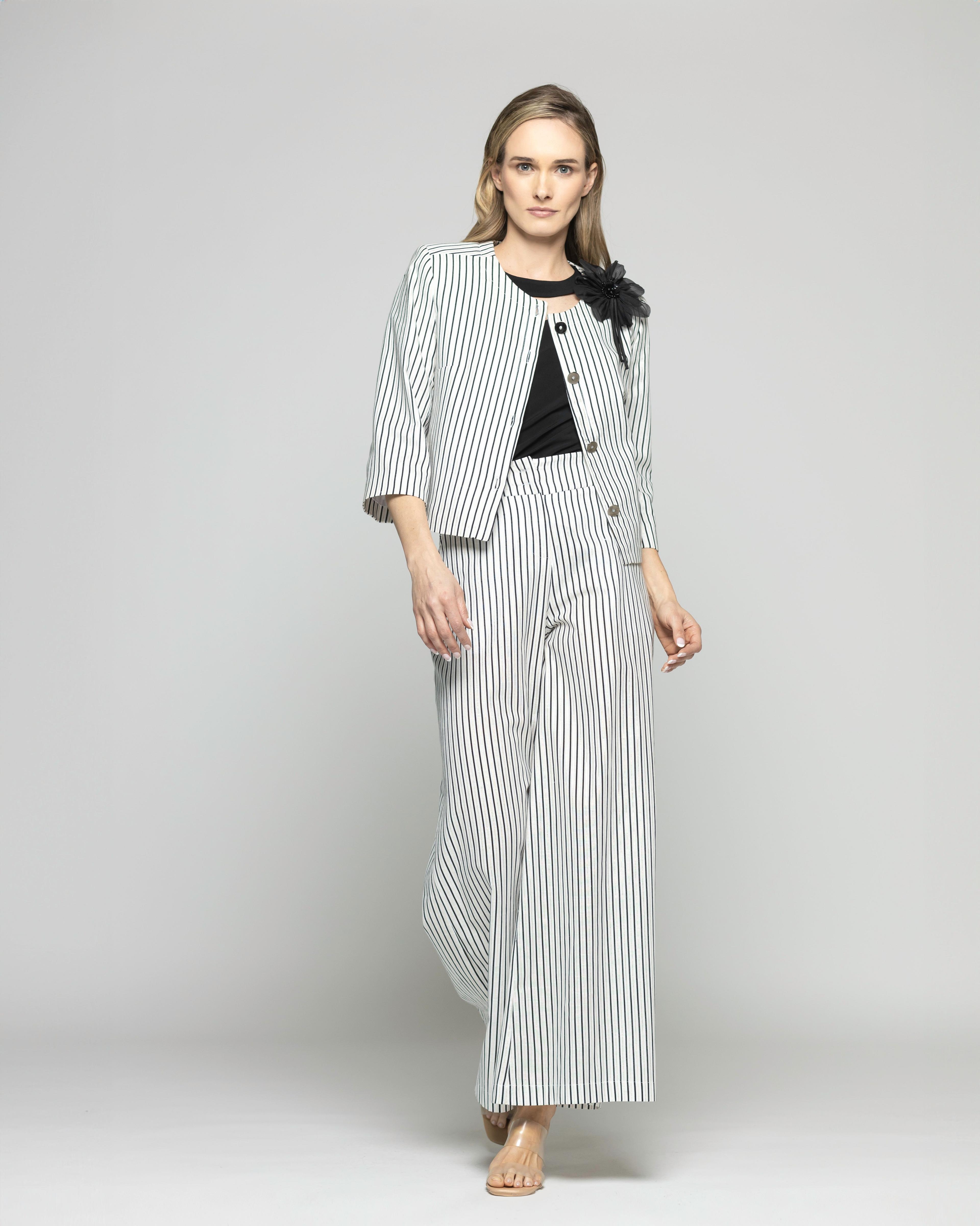 Blazer Mujer Liatris Corto Escote Redondo Algodón Manga 3/4 Rayas Negro Y Blanco Ludovica