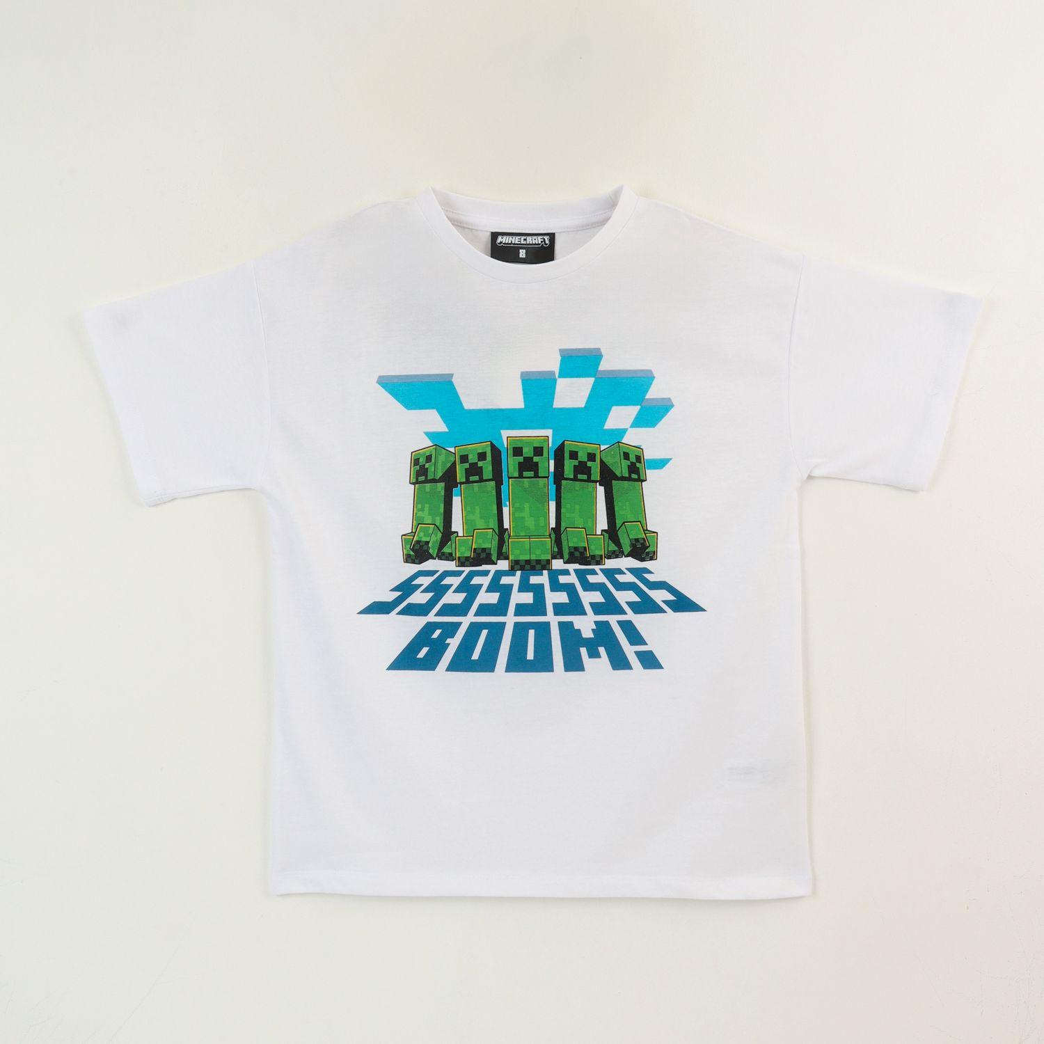 Polera Manga Corta Niño Blanco Creepers Boom Minecraft