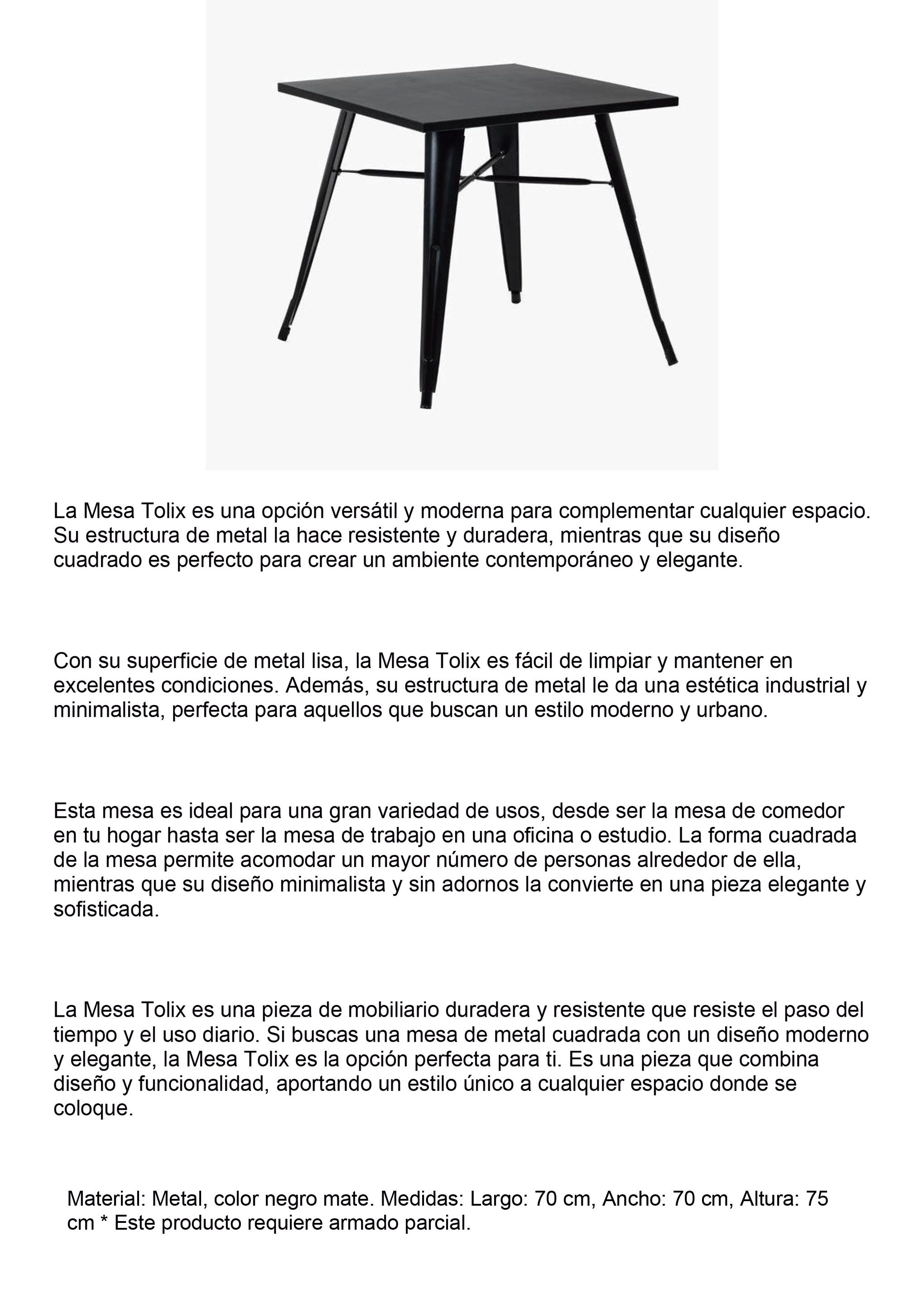 | Material Estructura Mesa | Metal |