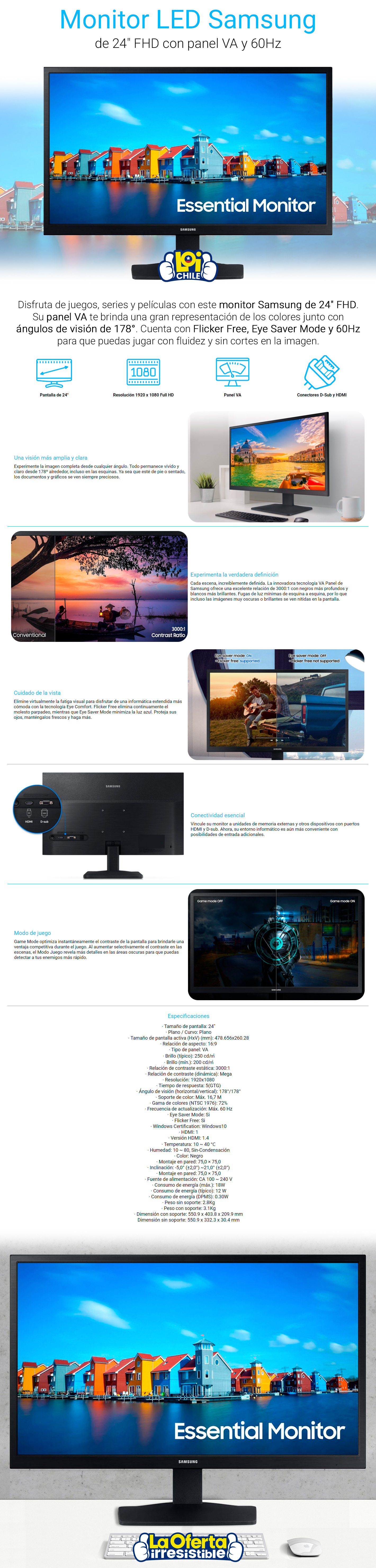 Monitor Samsung Plano 24' Full HD Panel VA 60Hz
