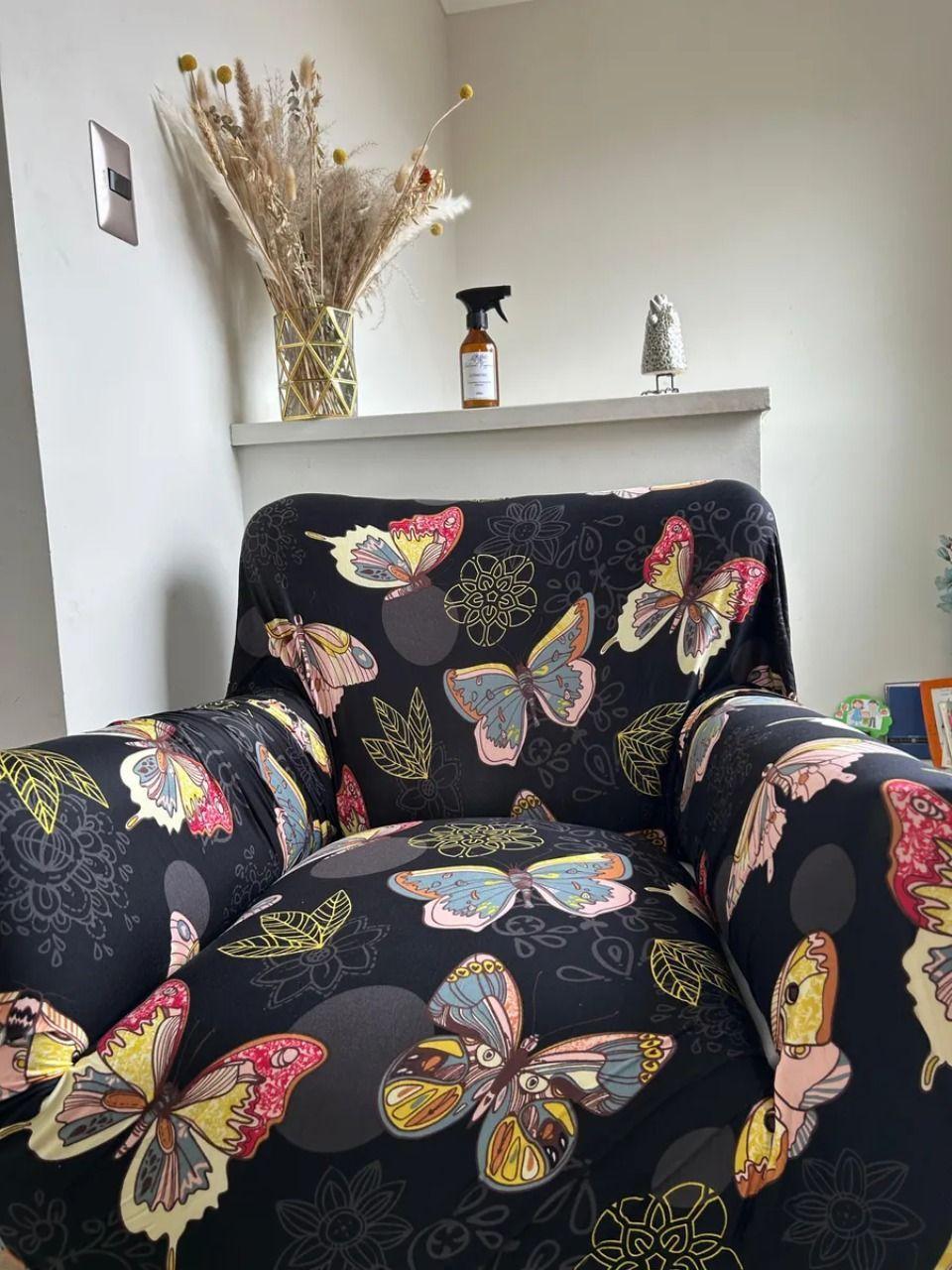 TODO HOGAR SANTIAGO DE CHILEFunda de sofá estampada de 1 cuerpo - Diseño Mariposa negra