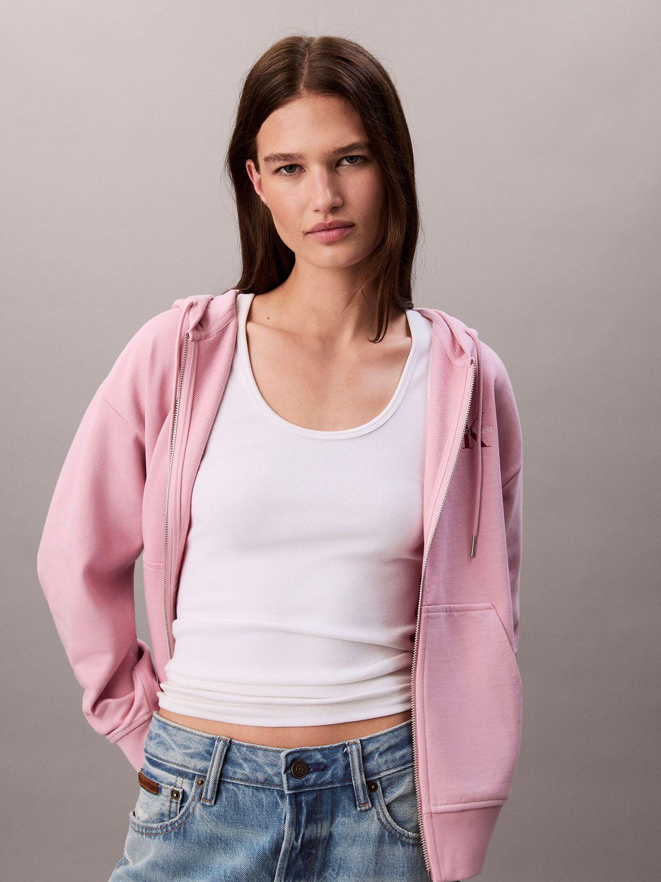 Elaborados con tejidos suaves y resistentes, son prendas ideales para climas frescos o para complementar un look deportivo con un toque urbano. Muchos modelos incluyen chaquetas Calvin Klein para mujer sin mangas como también cierres metálicos, capuchas o bolsillos amplios, lo que aporta practicidad sin perder elegancia.