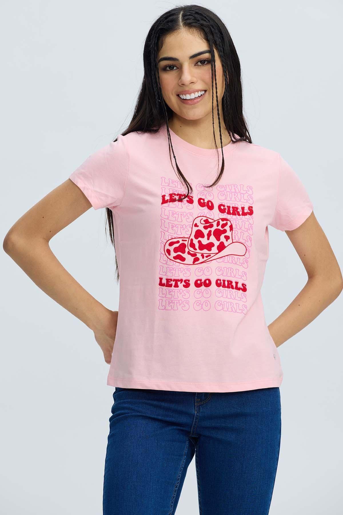 Polera Mujer Básica Print Palo Rosa