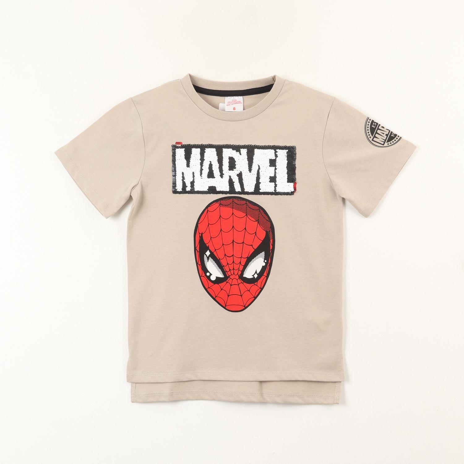 Polera Manga Corta Niño Spiderman Lentejuelas Beige Marvel