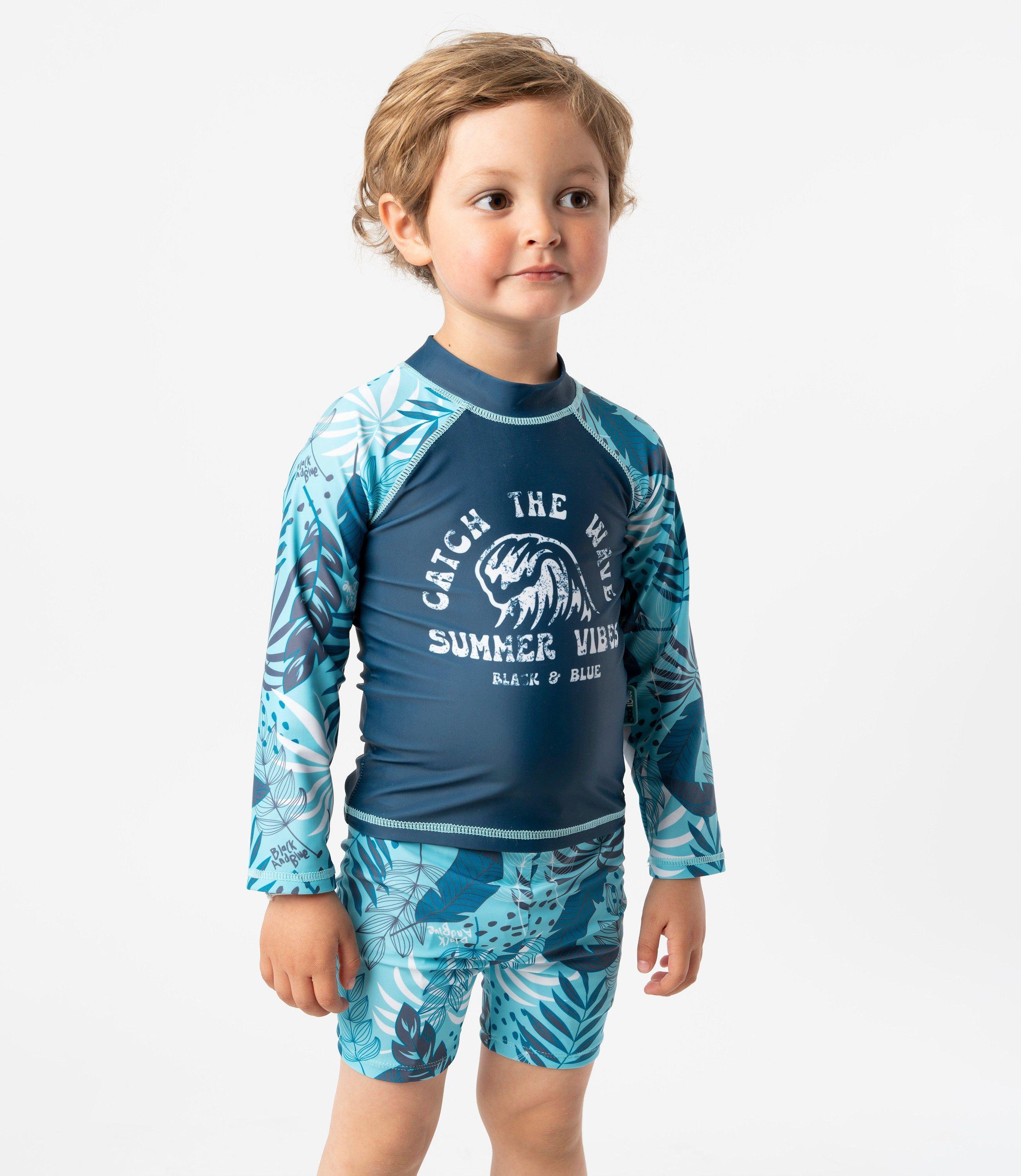 Traje de baño bebé con hojas azul Black and Blue