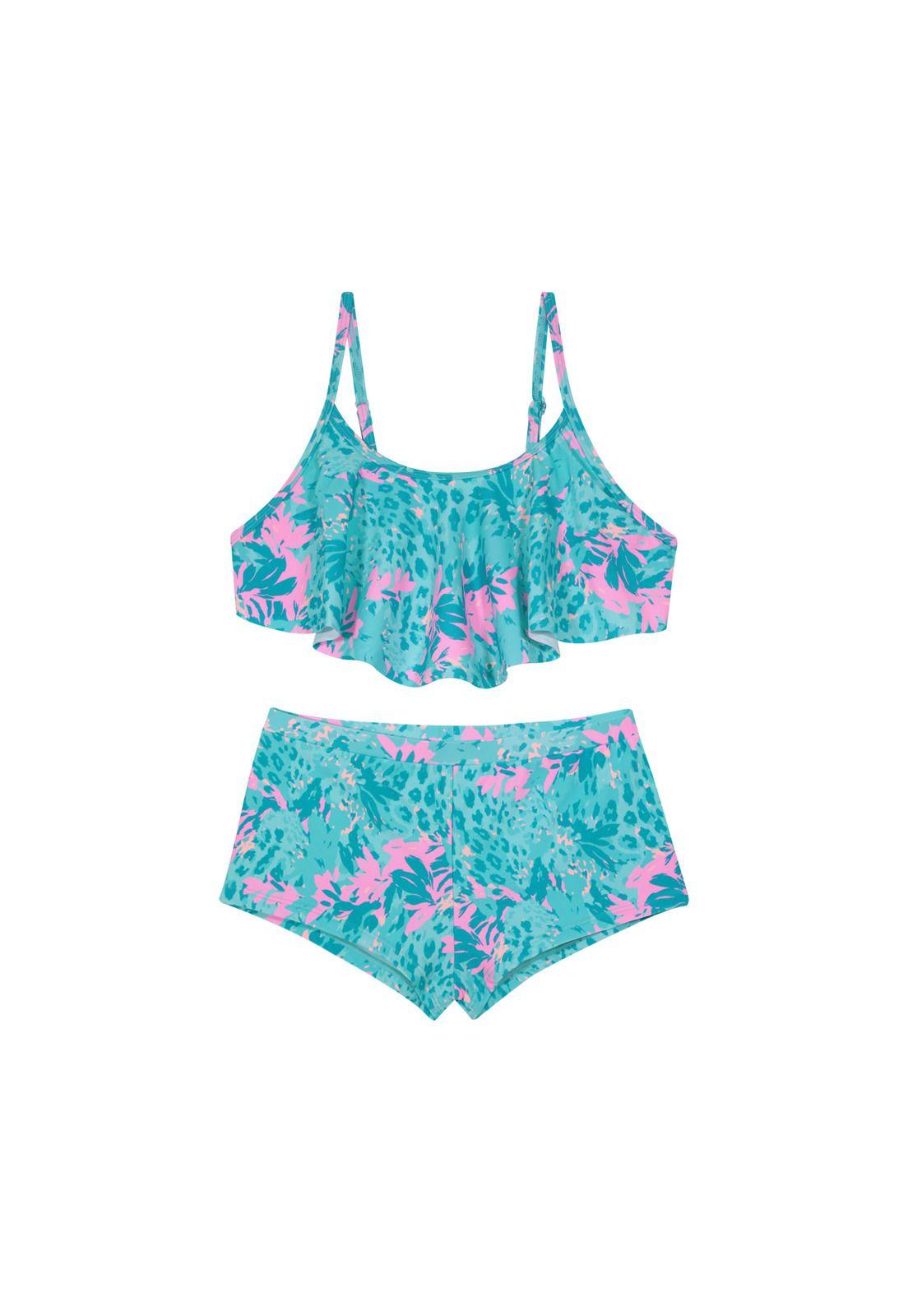 Traje de Baño Niña Teens Bikini UV50 Hot Pant H2O Wear Turq.