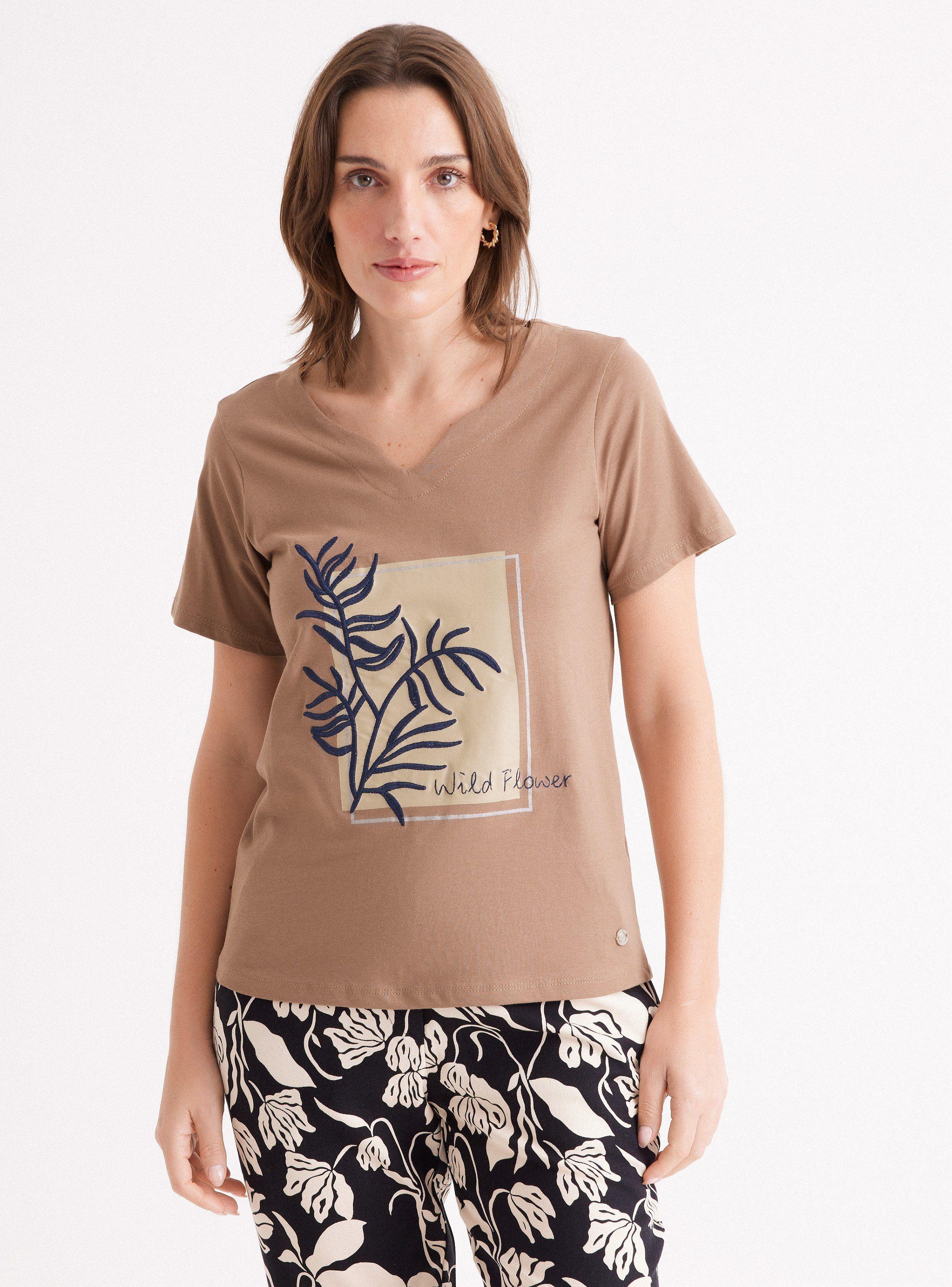 Polera Manga Corta con Aplicación Bordada