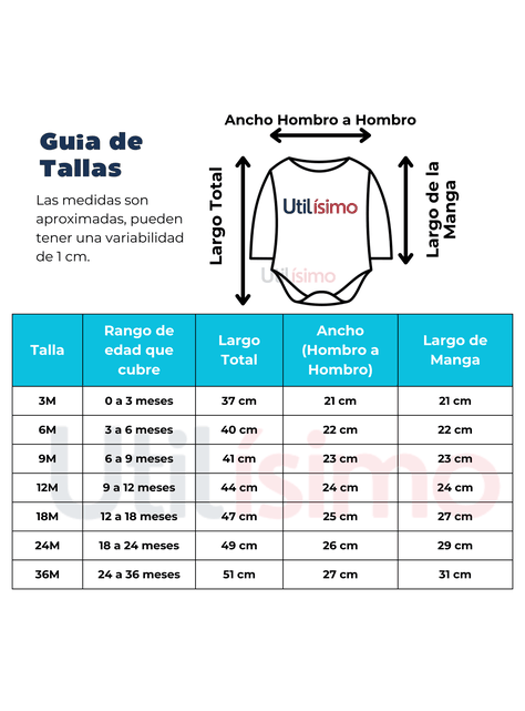 - 3 MESES: Hombro a Hombro 21 CM / Largo Total 37 CM.