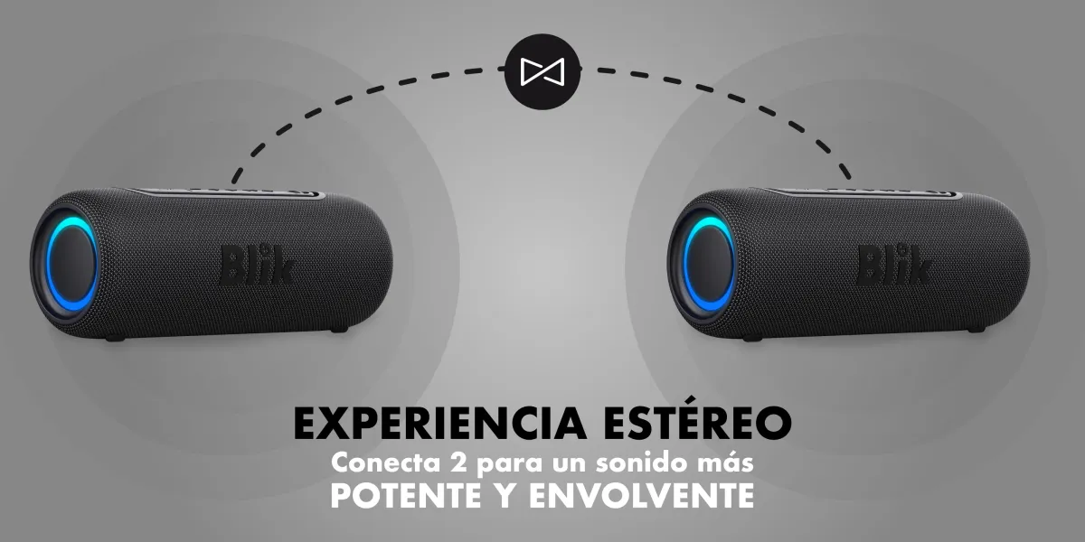 Para los amantes del sonido estéreo, el Blik Live ofrece la función TWS, que permite conectar dos parlantes al mismo tiempo, duplicando la potencia y creando un efecto envolvente más natural. Sus luces de colores añaden un toque divertido y vibrante, haciendo que tu música destaque donde sea que estés.