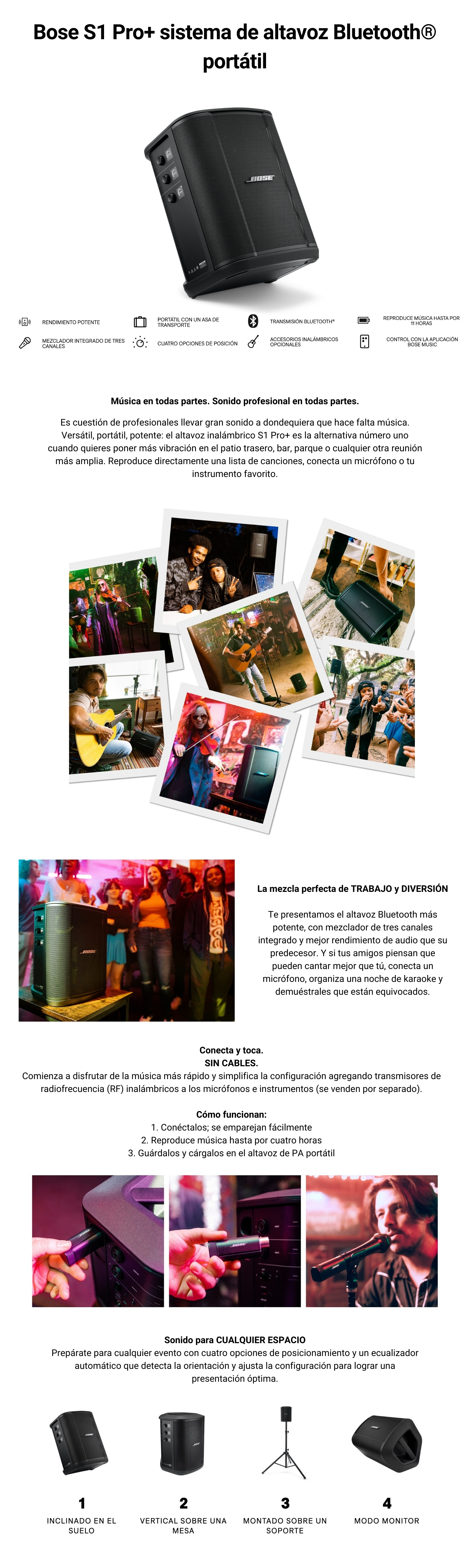 Es cuestión de profesionales llevar gran sonido a dondequiera que hace falta música. Versátil, portátil, potente: el altavoz inalámbrico S1 Pro+ es la alternativa número uno cuando quieres poner más vibración en el patio trasero, bar, parque o cualquier otra reunión más amplia. Reproduce directamente una lista de canciones, conecta un micrófono o tu instrumento favorito.