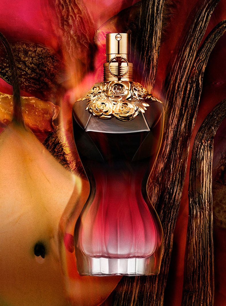 Con sus curvas femeninas, su cintura fina y su collar de flores, el frasco de La Belle es un himno a la feminidad ultrasensual.