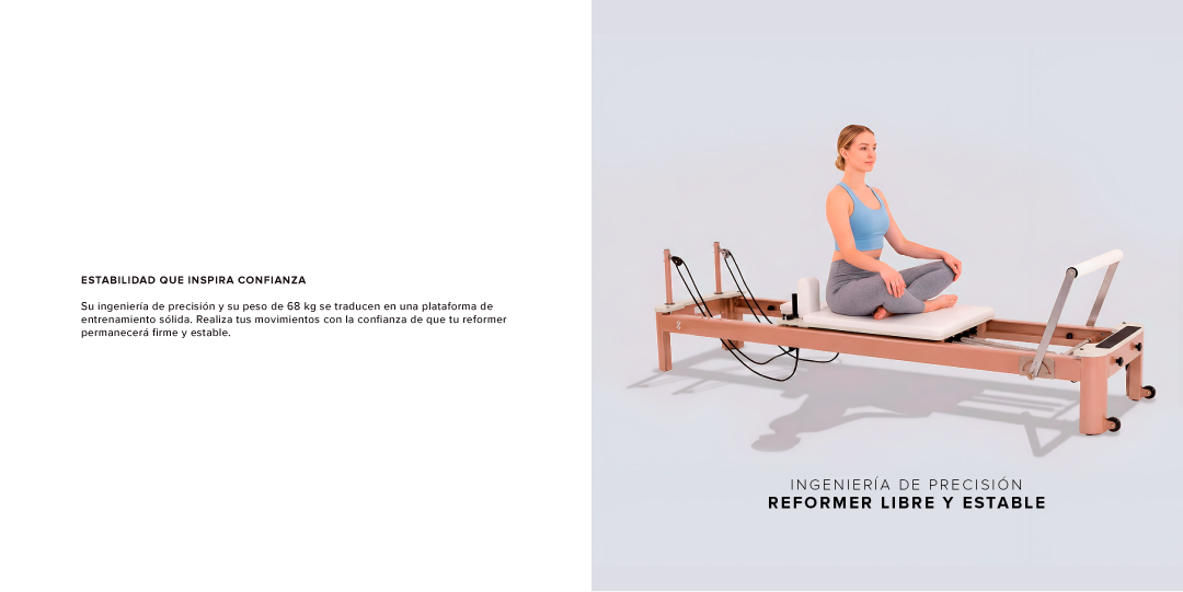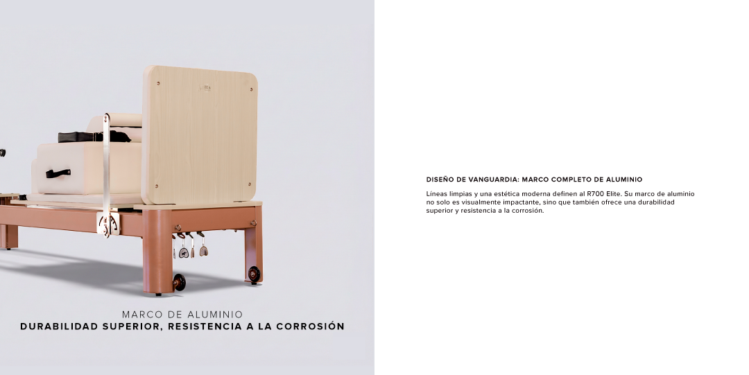 Descubre la fusión perfecta entre diseño de vanguardia y biomecánica de precisión con el Pilates Reformer R700 Elite.