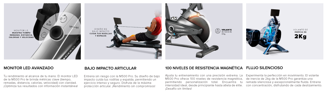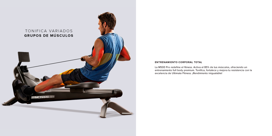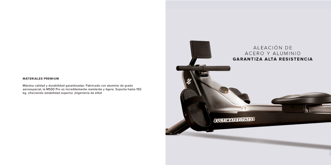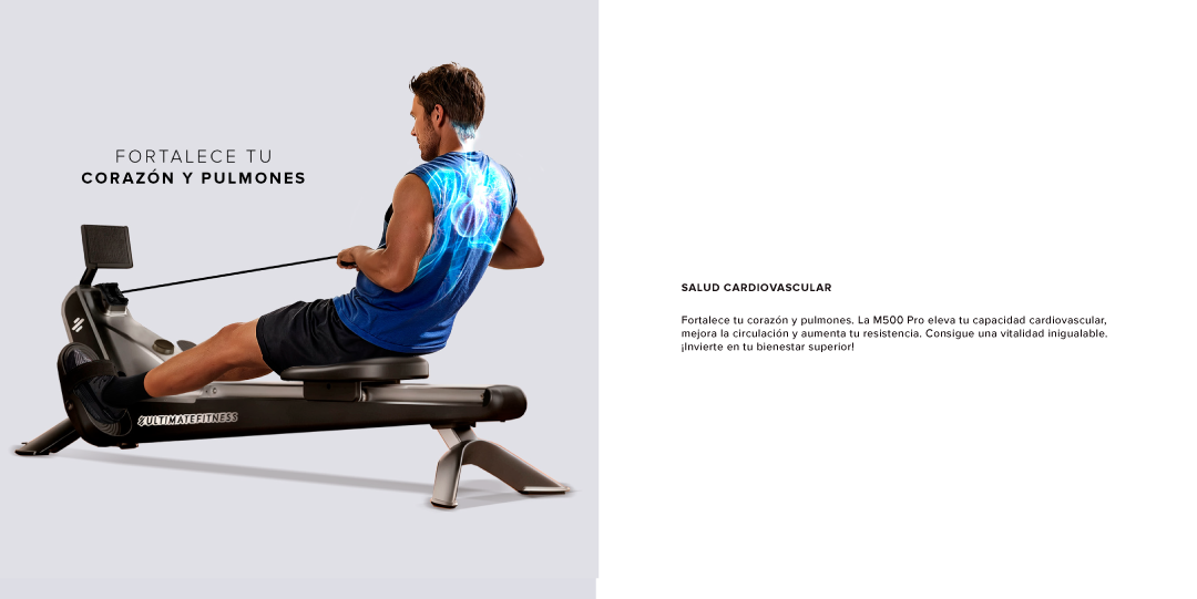 Experimenta un entrenamiento de cuerpo completo inmersivo y silencioso con la Remadora Magnética M500 Pro. Fabricada en aluminio de grado aeroespacial para una durabilidad superior.