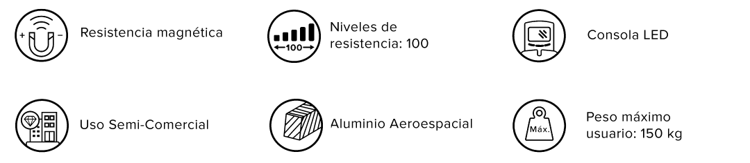 | Características | Sistema de transmisión por correa y resistencia magnética. |