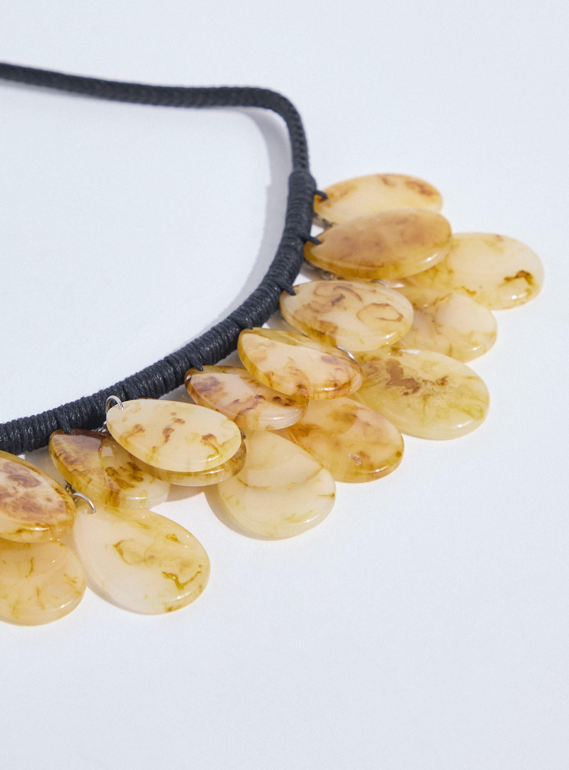 Collar Textil con Piezas de Resina Efecto Ámbar
