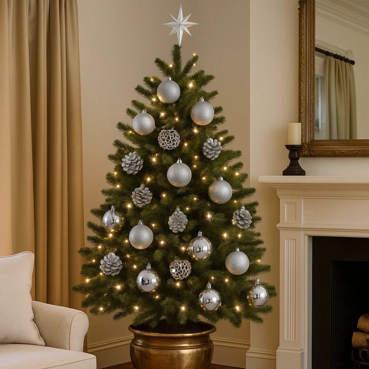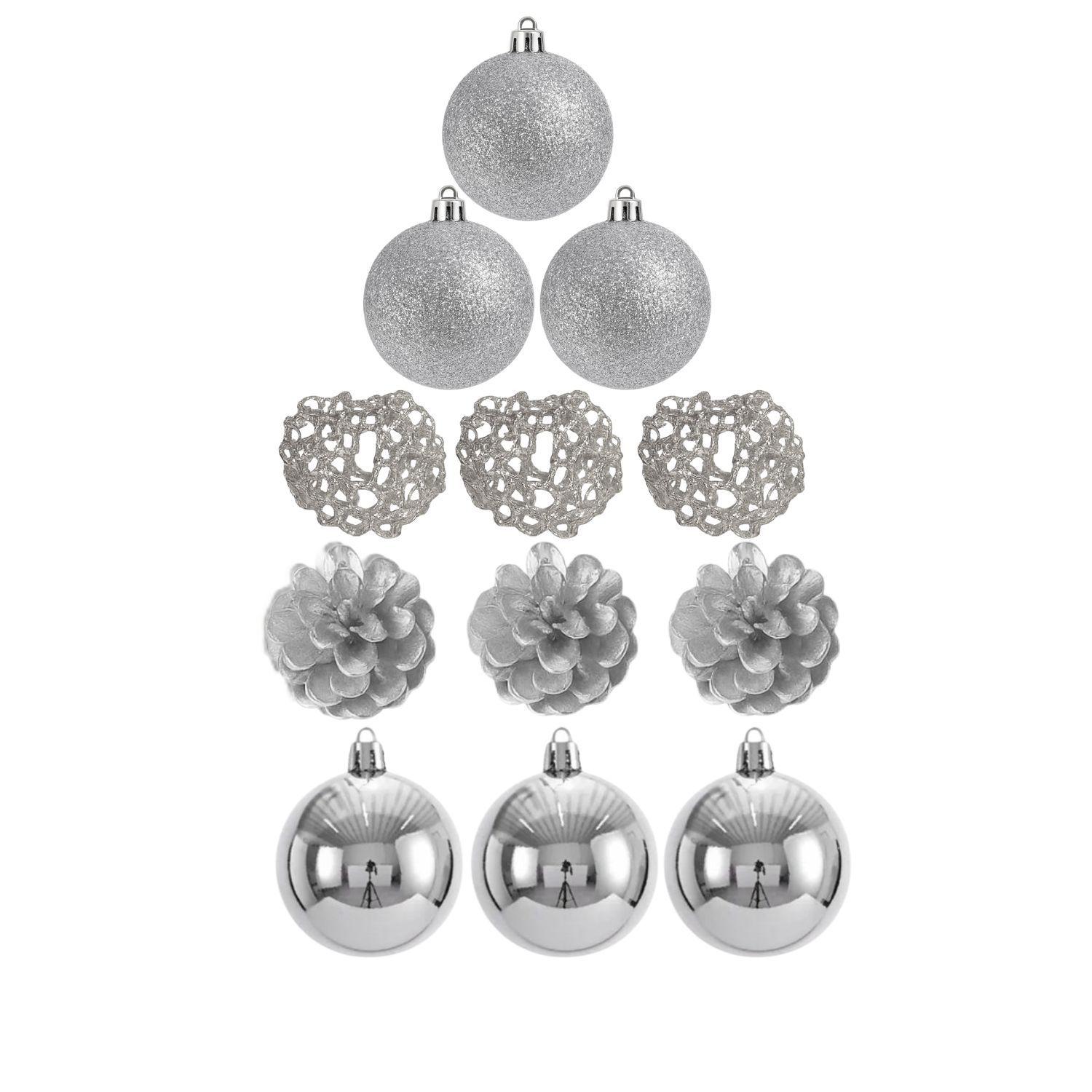 Set de 9 Esferas Navidad Plateadas 8 cm