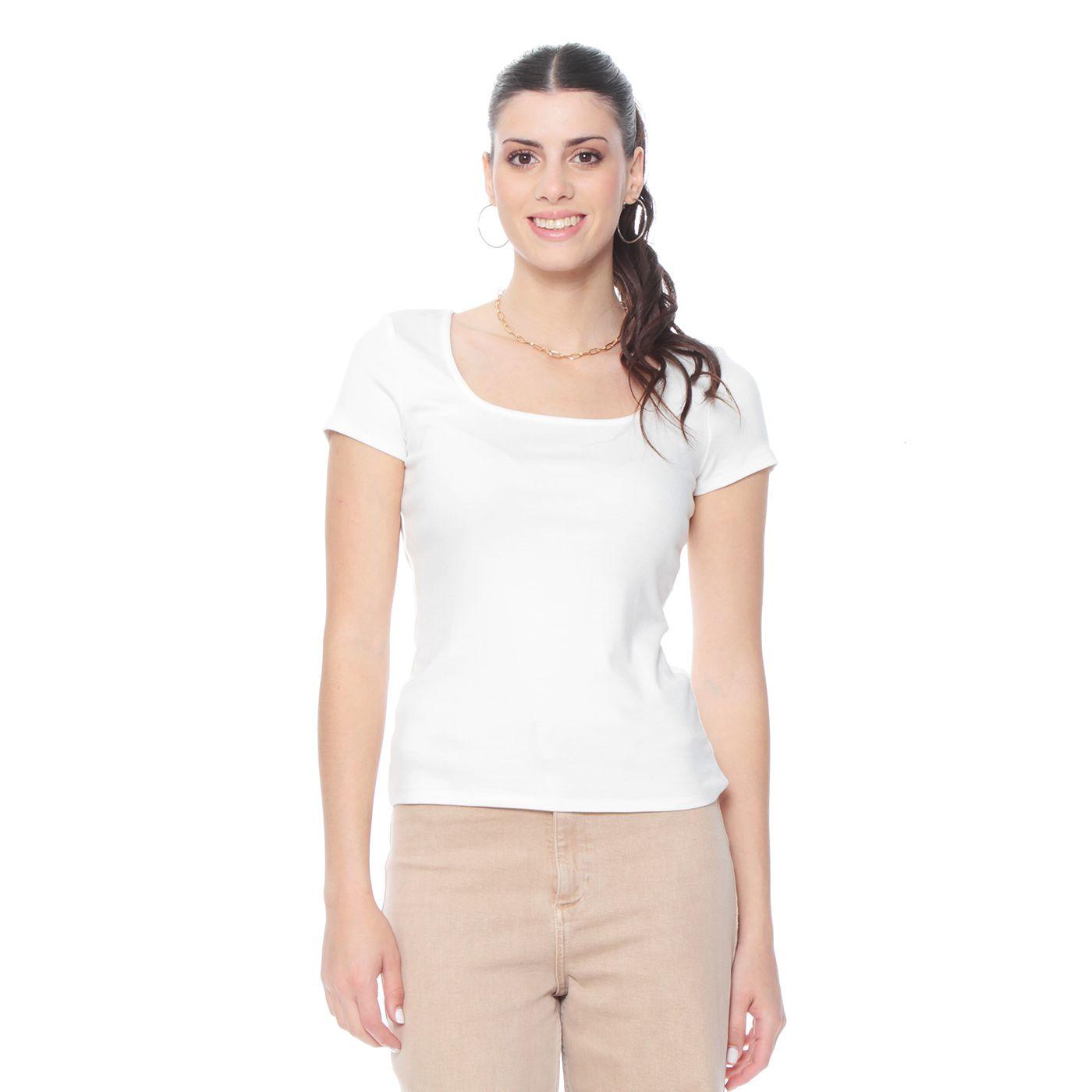 Polera Manga Corta Solida Escote Cuadrado