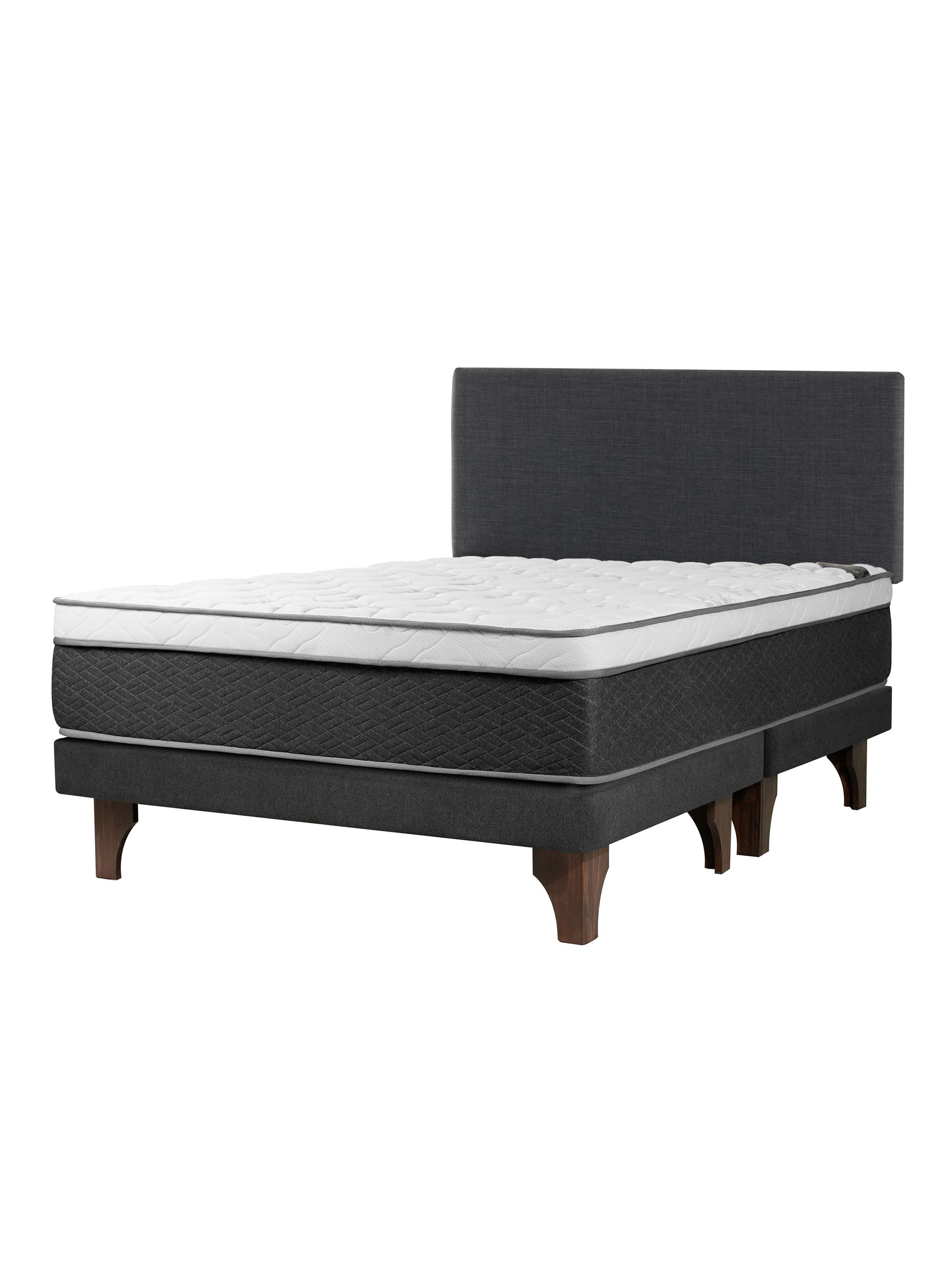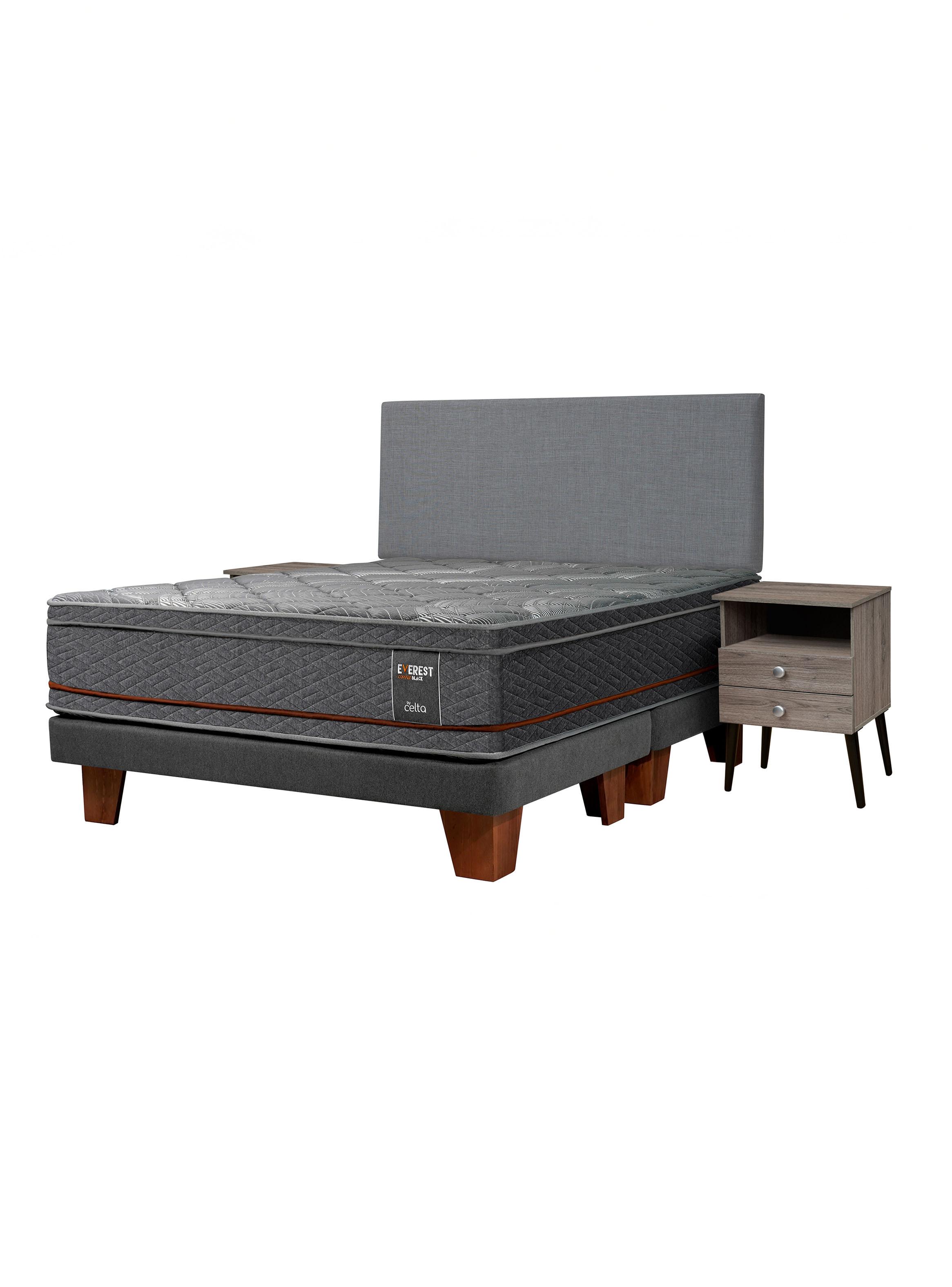 Cama Europea Everest Cooper Black 2 Plazas Base Dividida Respaldo Mallorca