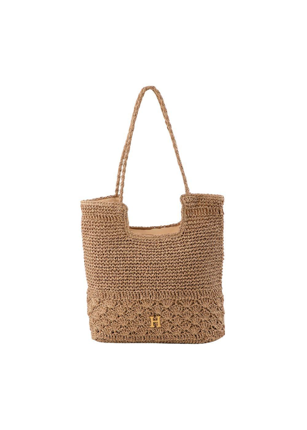 Cartera Tote Mia Tipo rafia tejida café Playa Humana