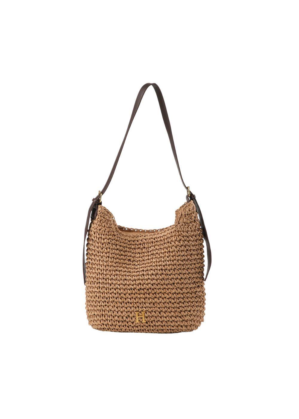 Cartera de Hombro Mimi Tipo rafia tejida café Playa Humana