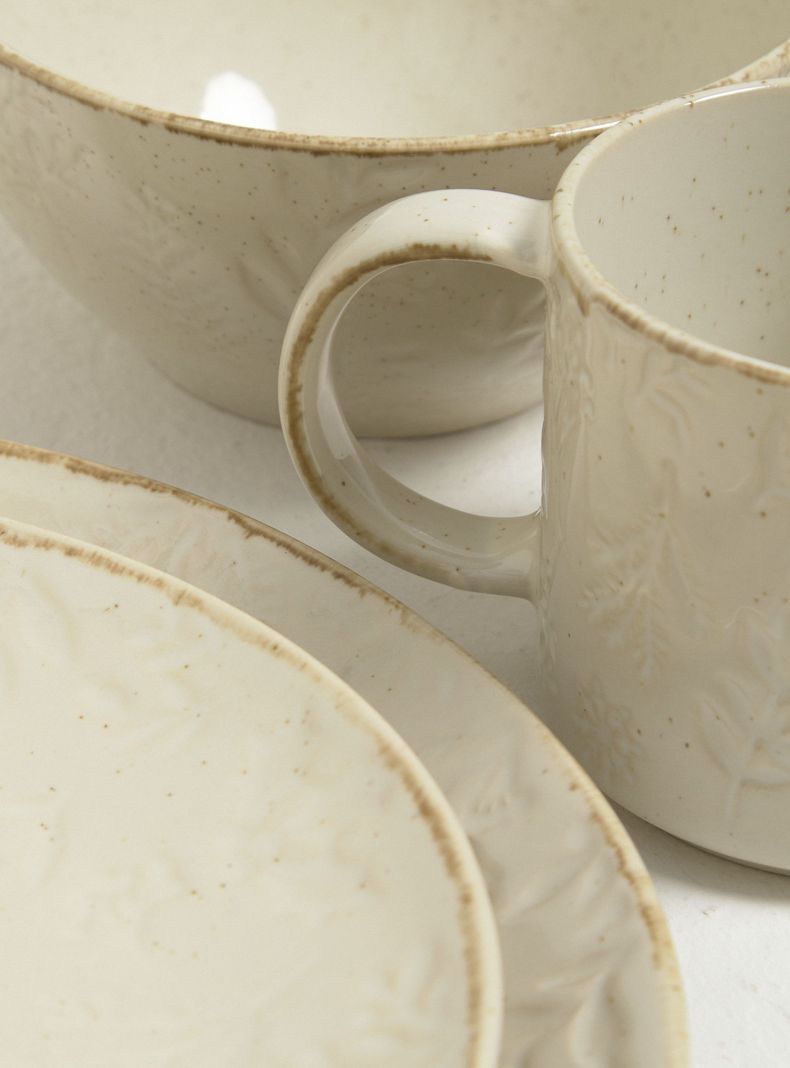 | Dimensiones | Plato principal 26.5x26.5x2.2 cm | Plato lateral 21x21x2.4 cm | Bowl 15x15x7.5 cm | Mug 9x9x8 cm |