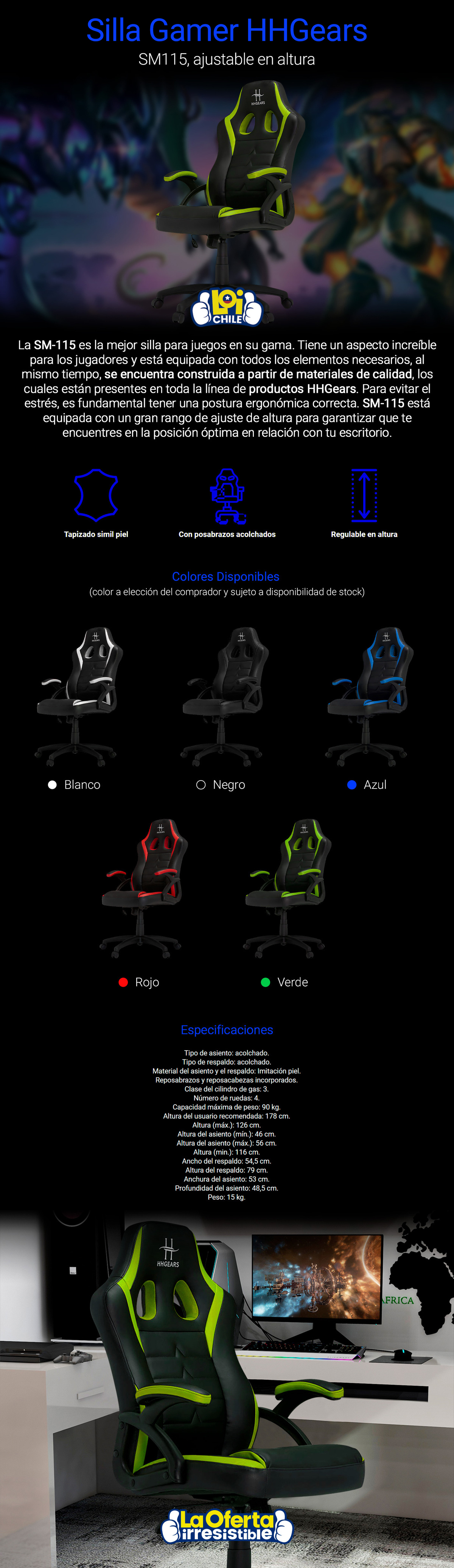 Silla Gamer Vertagear HHGears SM115 Altura Ajustable Verde