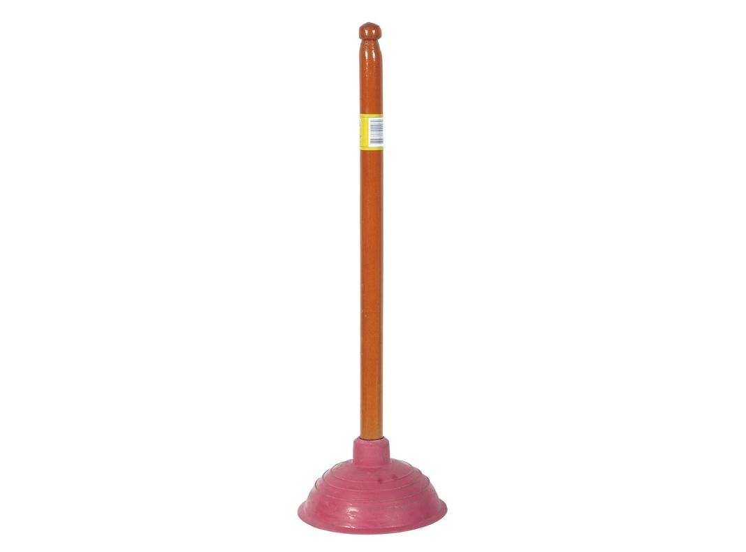 Diferentes colores. Fabricado en compuesto de caucho pigmentado y el mango es de madera barnizado