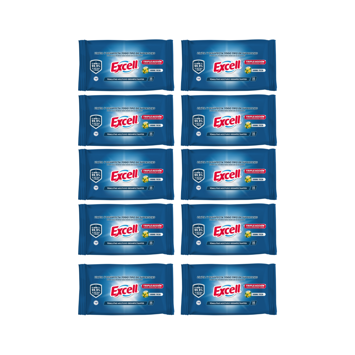 Pack 10 Toallitas Desinfectantes Excell Aroma Fresh 350 Unidades