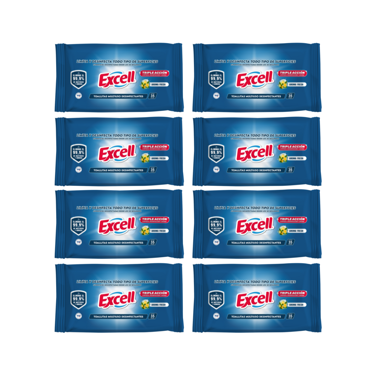 Pack 8 Toallitas Desinfectantes Excell Aroma Fresh 280 Unidades