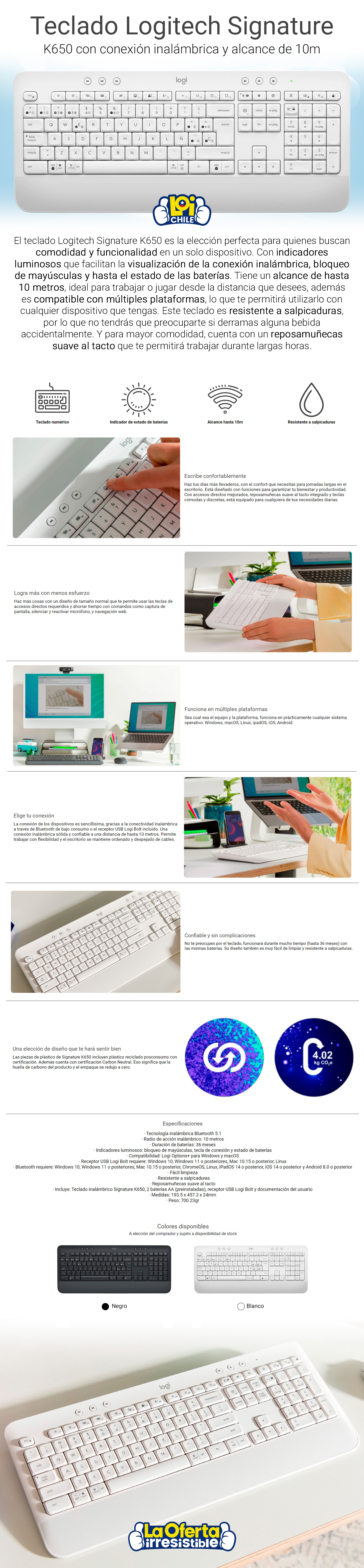 Teclado Inalámbrico Logitech Signature K650 Blanco