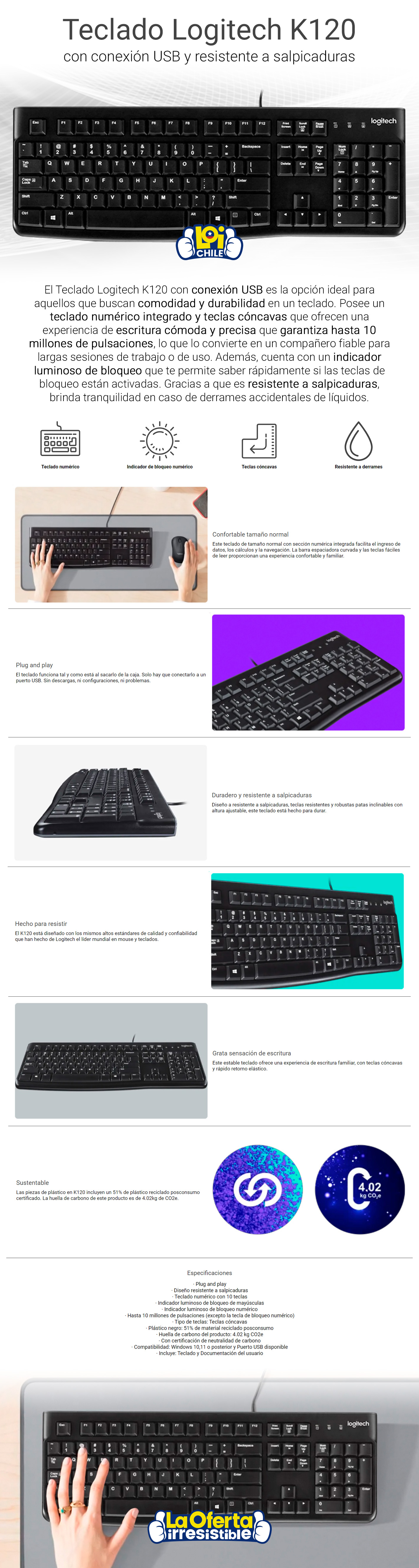 Teclado Logitech K120 USB Español Negro