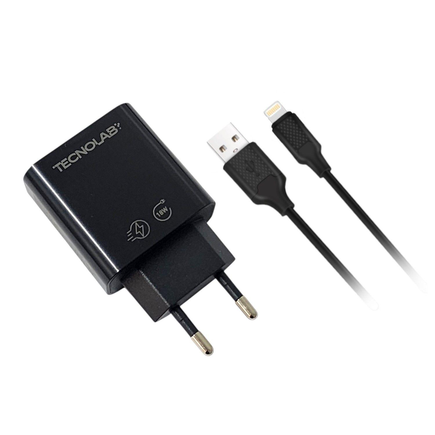 Cargador de Pared 18W QC + Cable USB a LTNG TL466BK Tecnolab