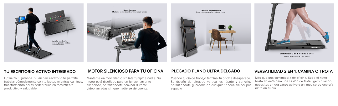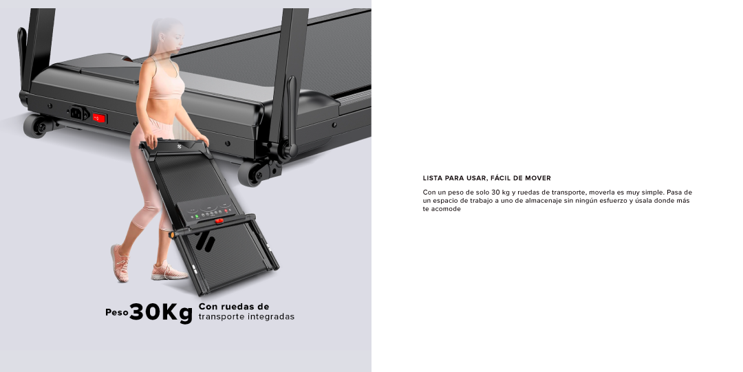 | Características | Compacta, plegable y elegante, esta trotadora combina funcionalidad, ergonomía y motivación. |