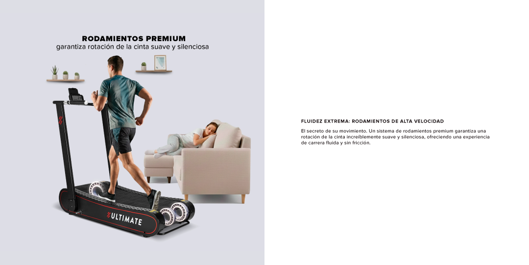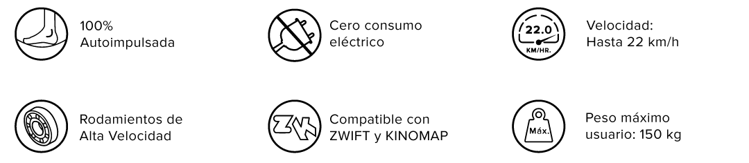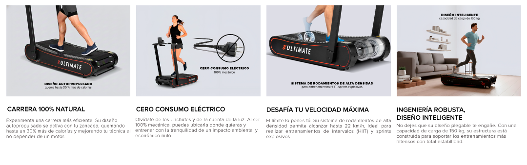 | Características | Trotadora mecánica, autopropulsada con rodamientos de alta velocidad. |