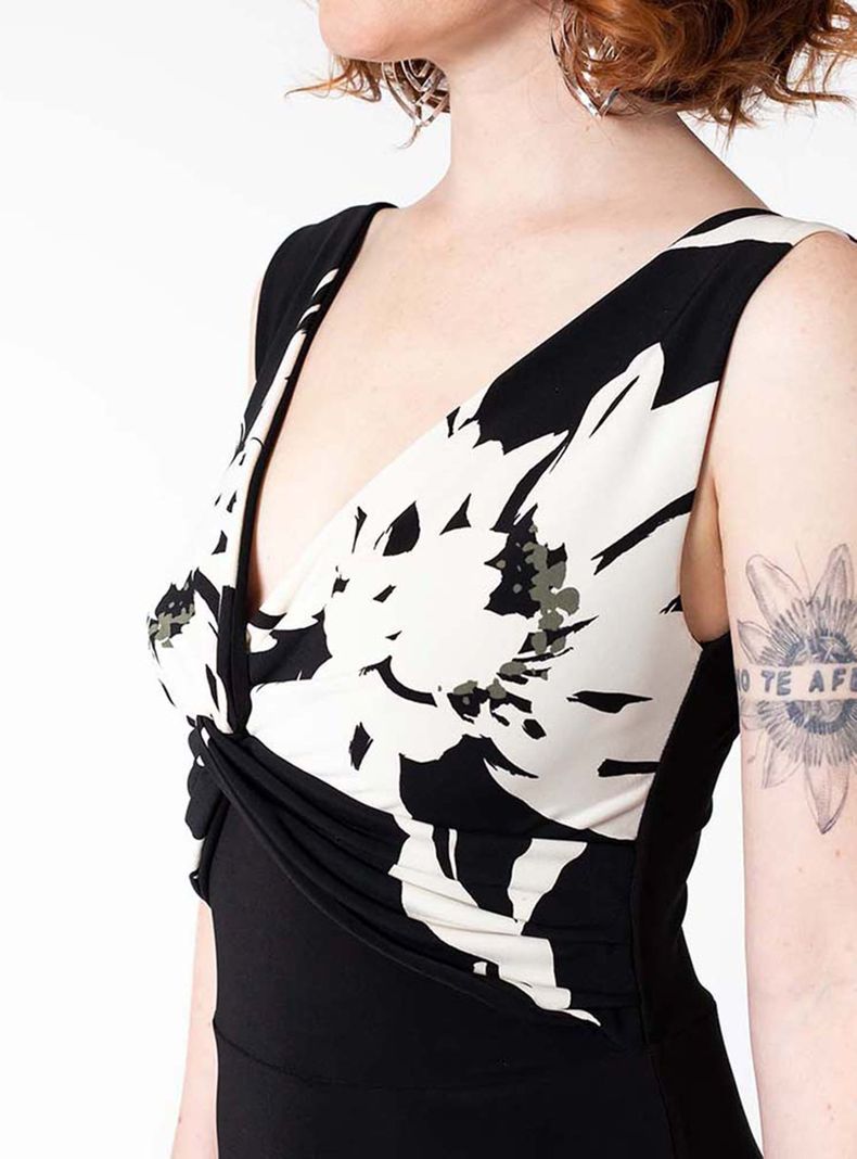 Vestido Lina Negro Flores Blanco Natalia Seguel