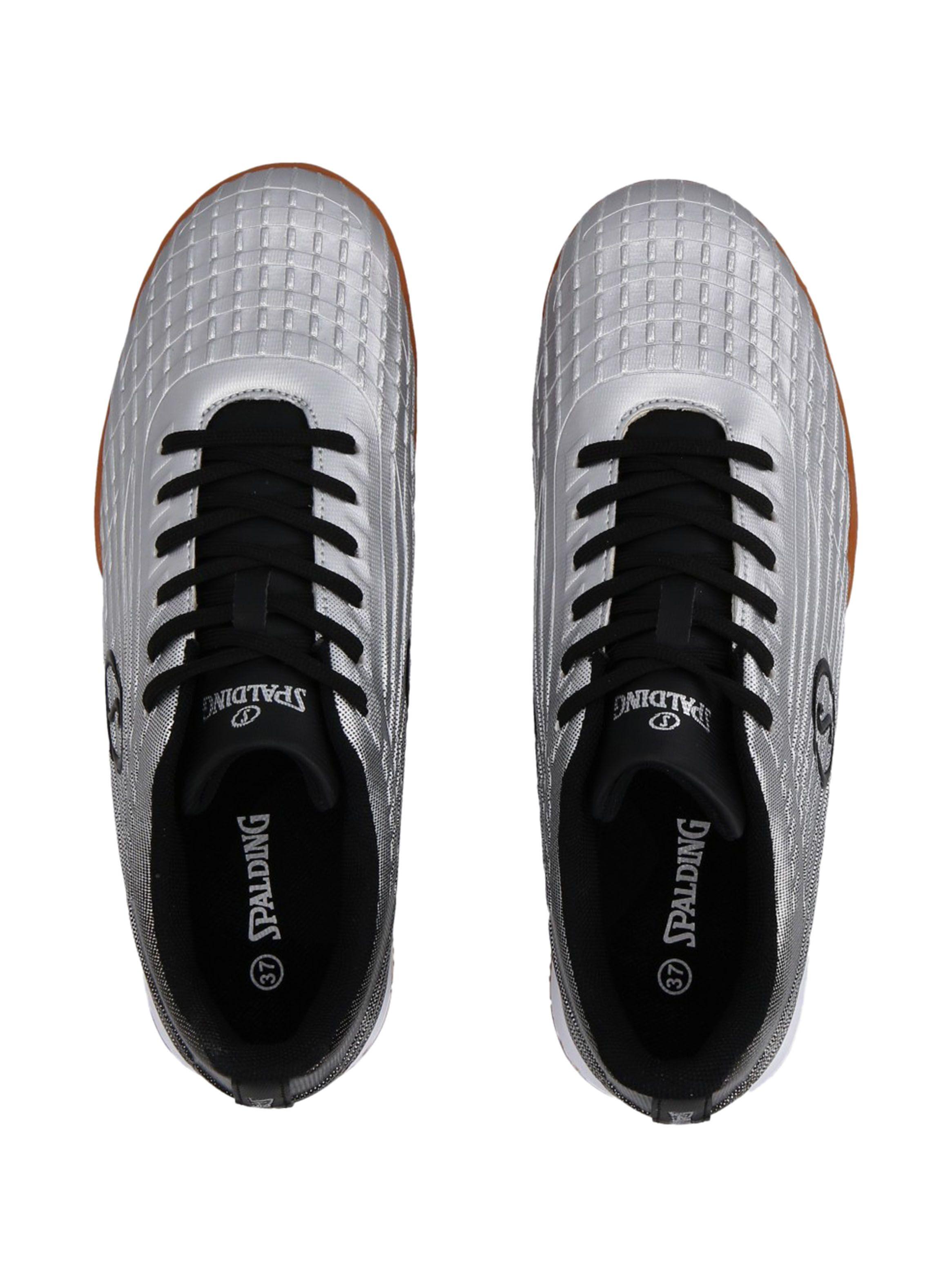 | Más Información | Las zapatillas de futsal Spalding son perfectas para tu juego y están diseñadas para canchas indoor. Talón anatómico para un ajuste cómodo. Exterior sintético, resistente, con costuras de control en el antepié para ayudarte a mantener el balón cerca, cordones asimétricos para asegurar golpes limpios y suelas de goma que ofrecen máximo agarre. |